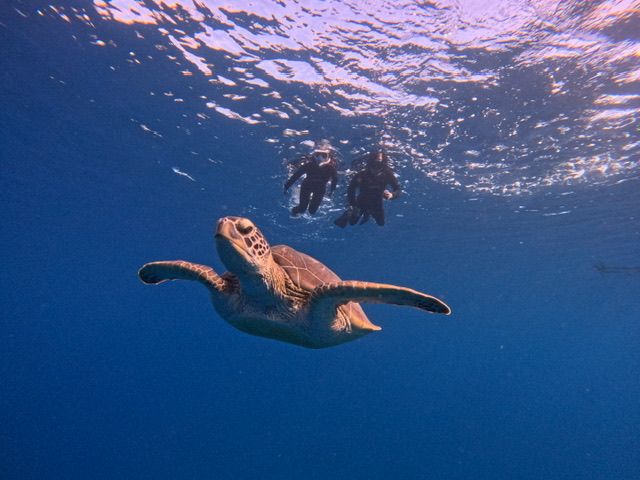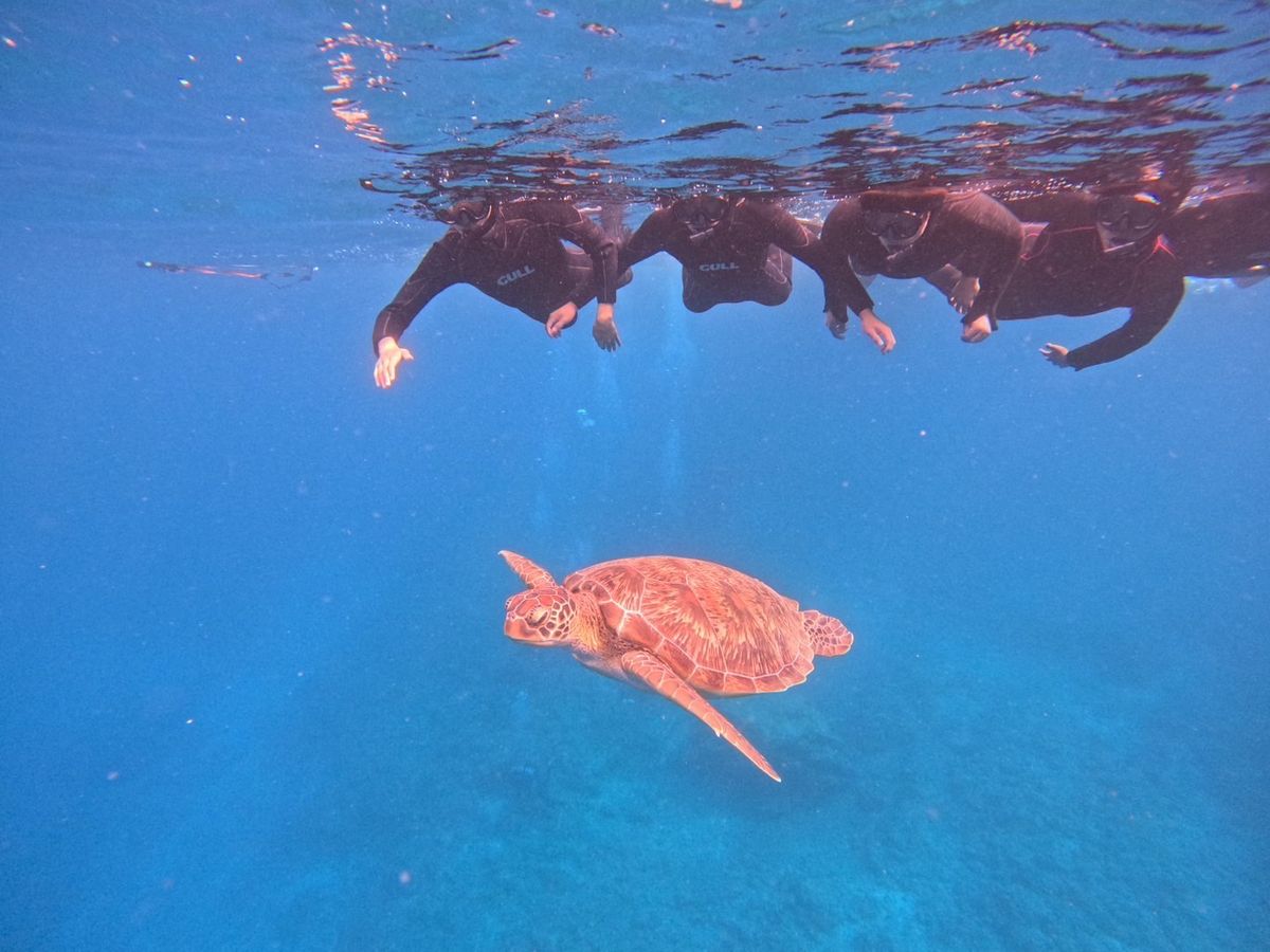 はじめてのウミガメシュノーケルでしたが、天候にも恵まれて最高の体験になりました!綺麗な海でびっくりする程間近でウミガメに会えました。インストラクターのカズさんも親切で、撮影した写真は帰りの車内ですぐに送っていただきました。良い思い出になったので、また行きたいです!