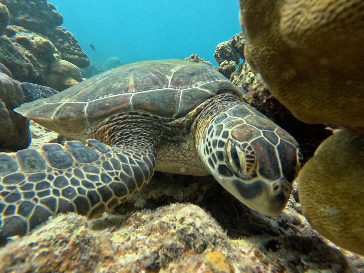 ガイドさんは、どのあたりにウミガメがいるのかもよくご存じで、さらにウミガメが呼吸のために浮上してくるタイミングまでわかっていて、本当にすごいなと思いました。