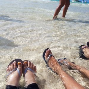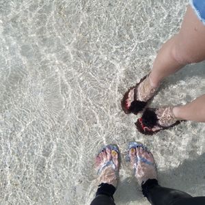 珊瑚の粒子など海底にあり、素足だと怪我をするため、 ウォーターシューズかビーチサンダルを履いたほうがよいと思います。
