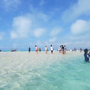 幻の島についに上陸です。到着したら写真も撮ってくれます。幻の島という名前だけあり、沖の真ん中に出てくる砂浜はとても神秘的でした。海藻やゴミなども全くなく、白い砂浜と360度見渡す限りの青い海が広がりました。グラビアの撮影でもよく使われるようです。足元の水もとても透き通っていてきて良かった、また来たいと思える島でした。是非また参加したいです。ありがとうございました(^O^)