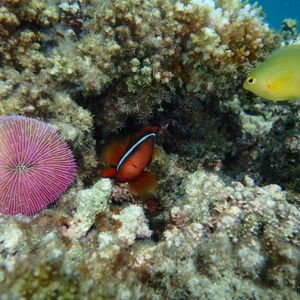 シュノーケルはちょっと見にくい位置でしたがクマノミもいました。また珊瑚はやや白化していました。今年は仕方のないことです。