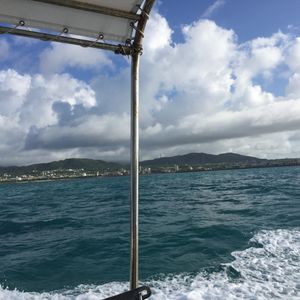 さて、ギリギリセーフで参加できたシュノーケルツアーの当日も曇り空。数日前の台風の影響か波も穏やかとは言えず少しがっかりモードでしたが、スタッフの方はとても感じが良く気配りもあって、島に向かう船の中では気分も一転、これから始まる体験にワクワクしていました。