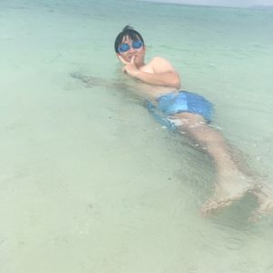 島のまわりはとても浅く、海水がすごくあったかいので、温泉気分でのんびりすごしました。笑