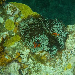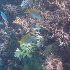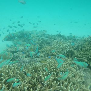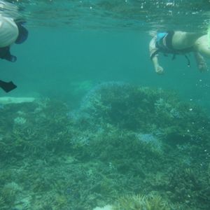 その後、船を海につけフィンで珊瑚礁をシュノーケリング。浅めの海なので珊瑚や魚が手に届きそうなところにいっぱい!水中カメラでも撮りやすい深さでした。