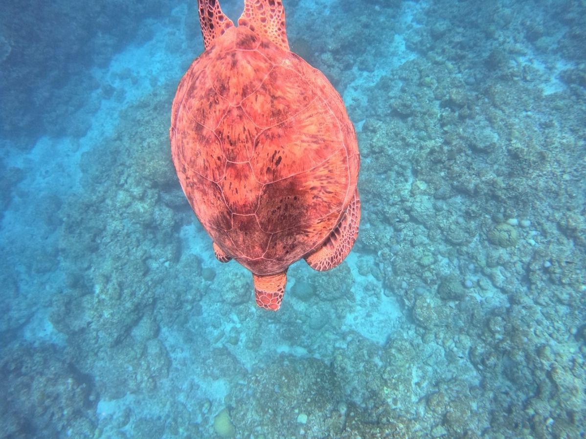 シュノーケリング開始してすぐに、本当に海亀に会えました!素潜りも体験してみたかったなと思います。