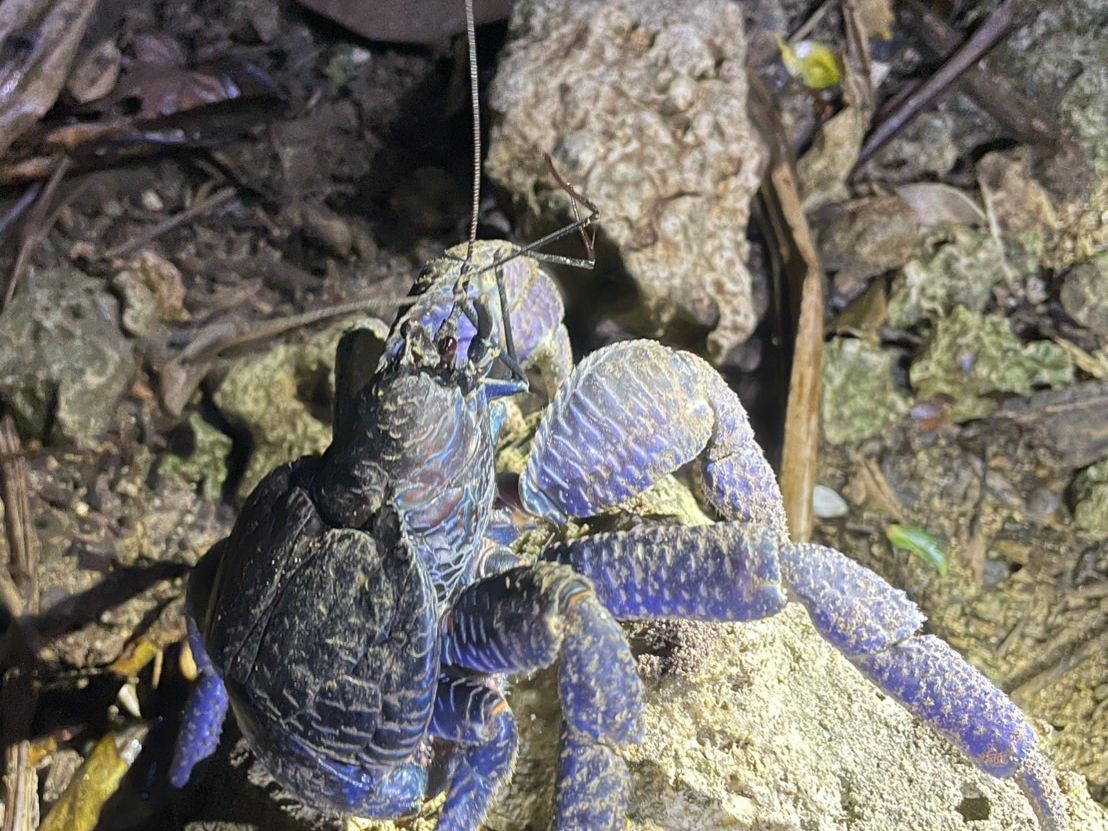 運次第かな?と思っていましたが、ヤシガニを4匹も見ることが出来ました。なんてラッキー。夜のジャングルを歩くワクワク感、ガイドさんの絶妙な案内に加え満天の星空も観ることができ最高の体験でした。