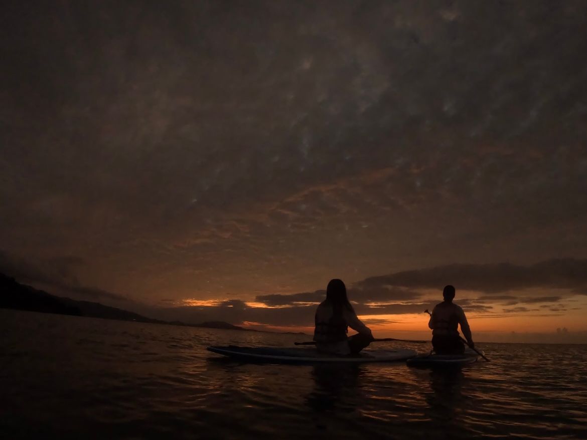 マングローブの脇をゆらゆらと漕いだりするのはsupならではの景色で、朝日は見えませんでしたが、朝焼けの海は心に残る思い出となりました!