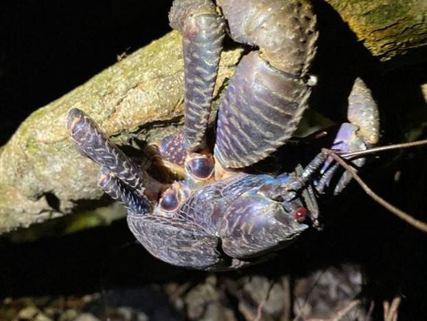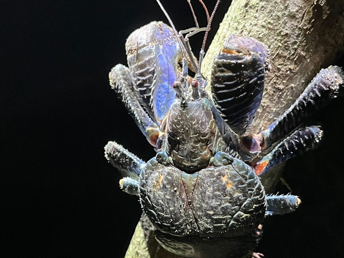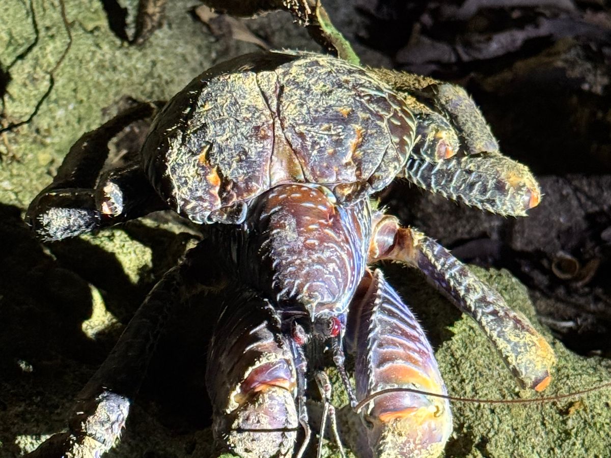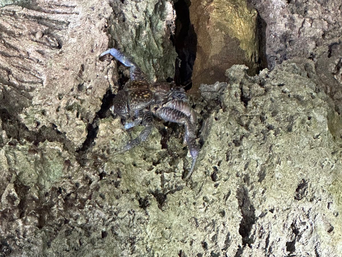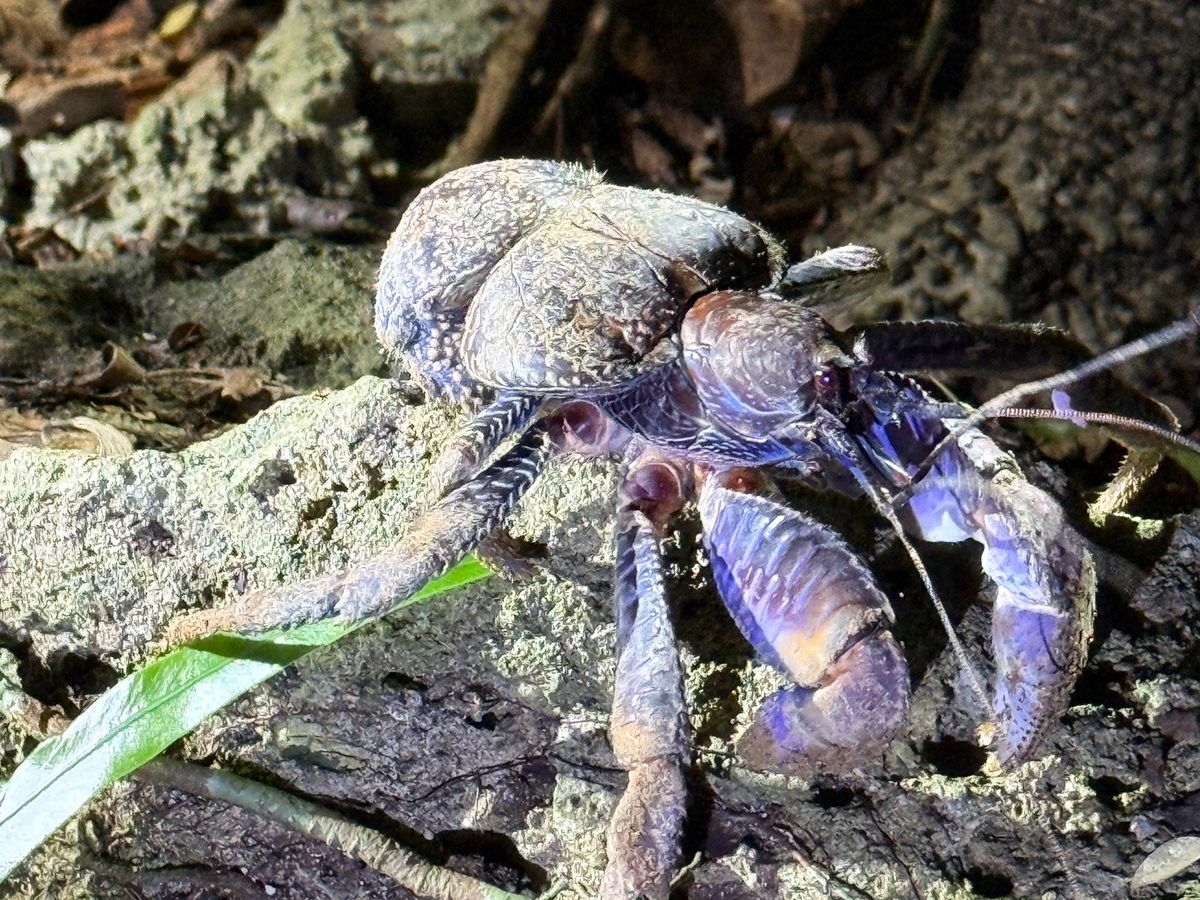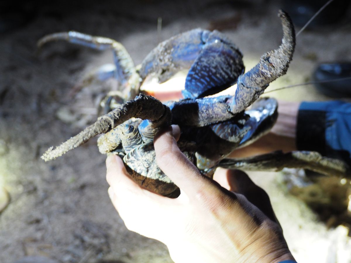 冬場なのでヤシガニは無理かなと思いましたが、ガイドさんが気合いで見つけ出してくれ、写真に収めることができました。