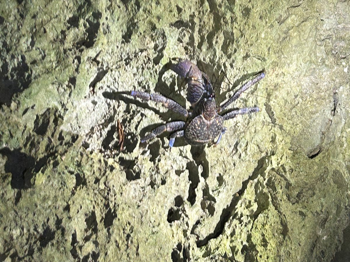 残念ながらお目当てのヤシガニには会えなかったけれど、ガイドのお兄さんが諦めることなく一生懸命崖の上まで登って探してくれてその熱意にとても感動しました!