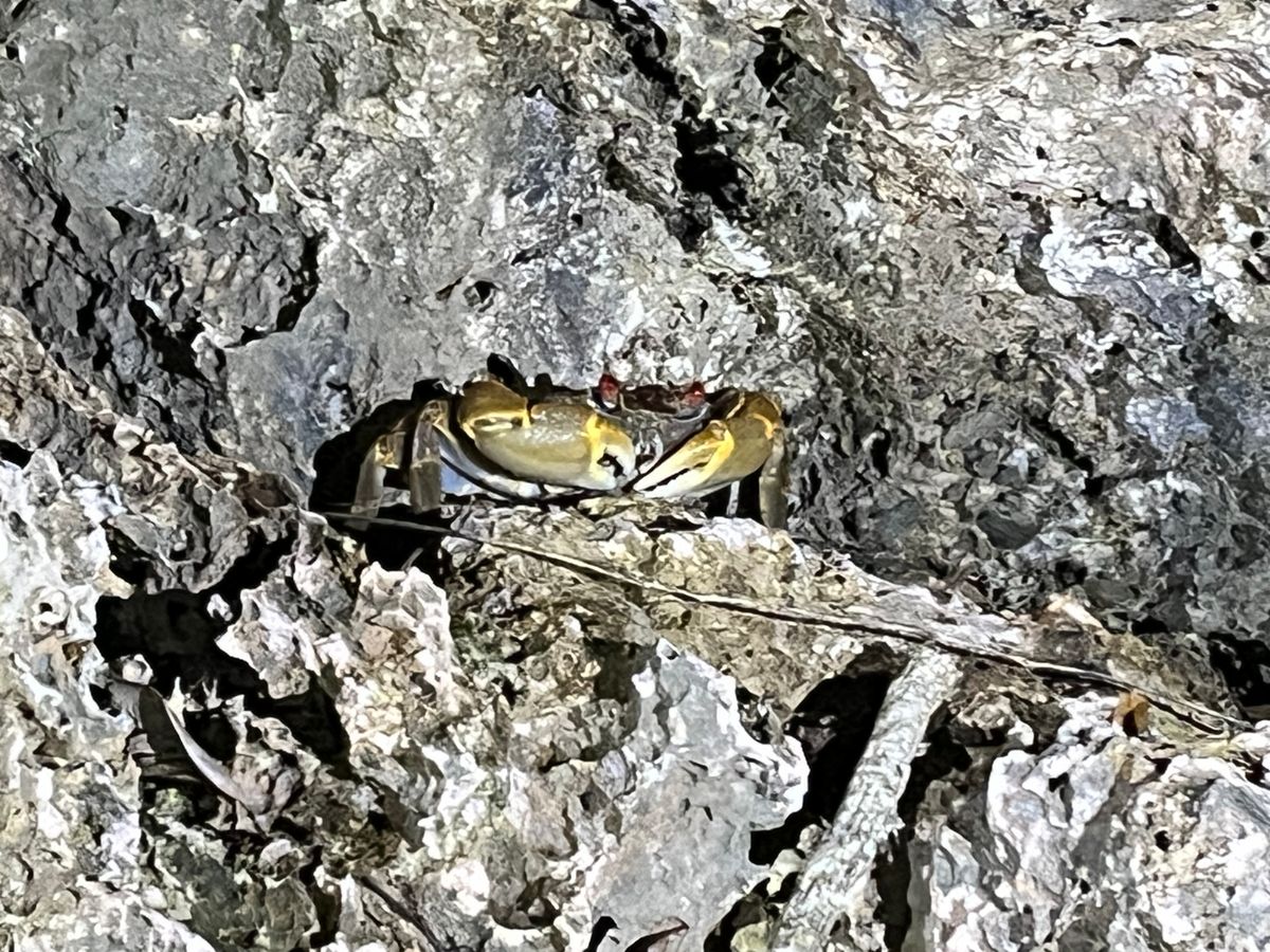 途中なかなか見つからないやしがにを探しに、ちょっと行ってきますと、遠くまで探しに行ってくれて、結果として目的のやしがにに出会えました。しんぺーさんありがとうございました。