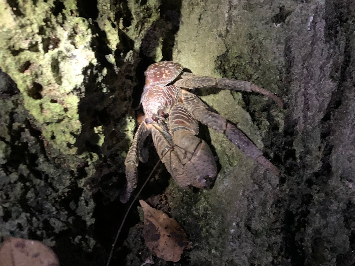 到着したら、ジャングルの中を進みながら、虫やヤシガニをガイドさんや自分たちで見つけるスタイルでした(本当に暗く足元も悪いので怪我をしないように気をつけてください)。