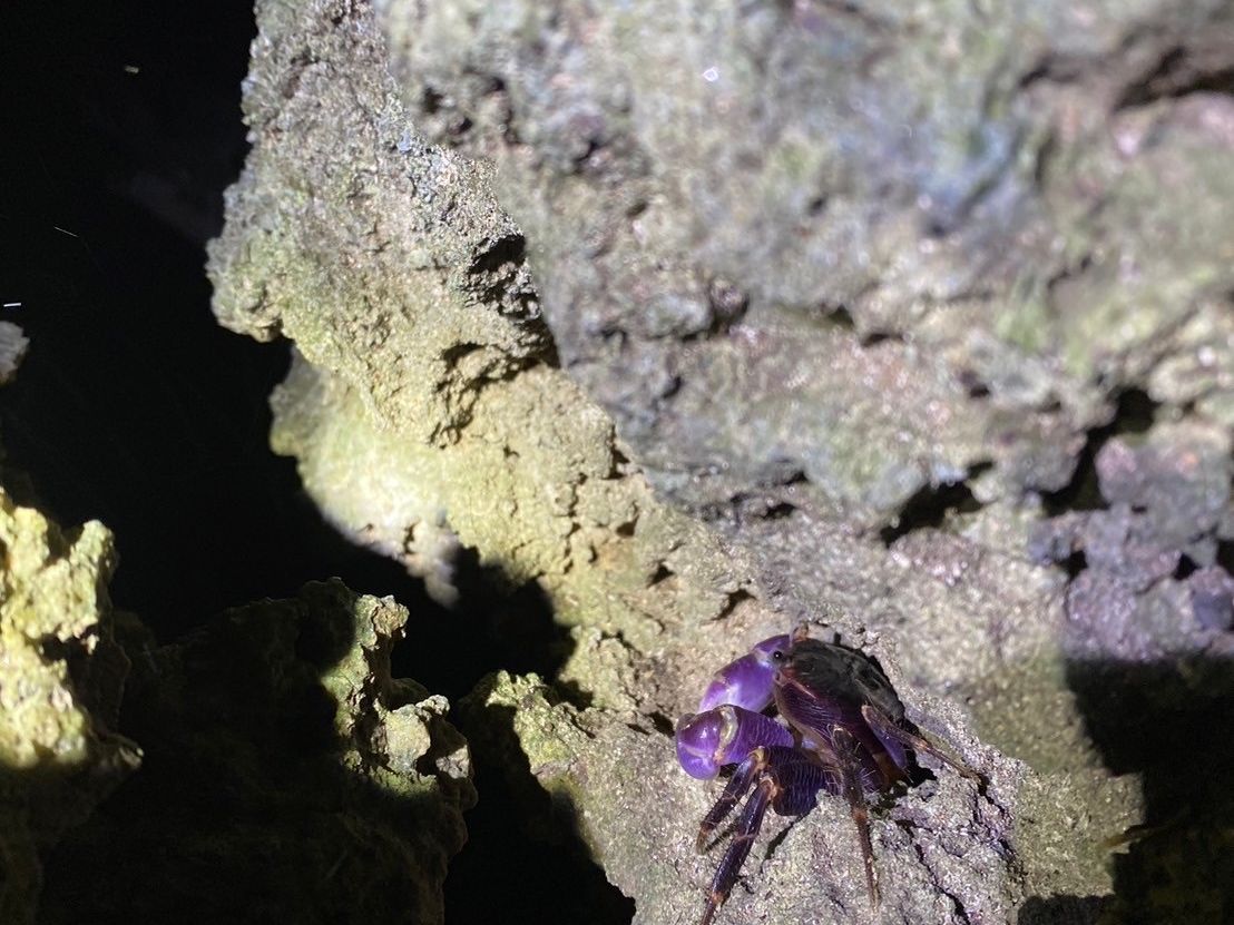 普段見ることのできないヤシガニやサソリもどき、ヤドカリ、ななふしなど様々な生物にあえて、最高の経験となりました。