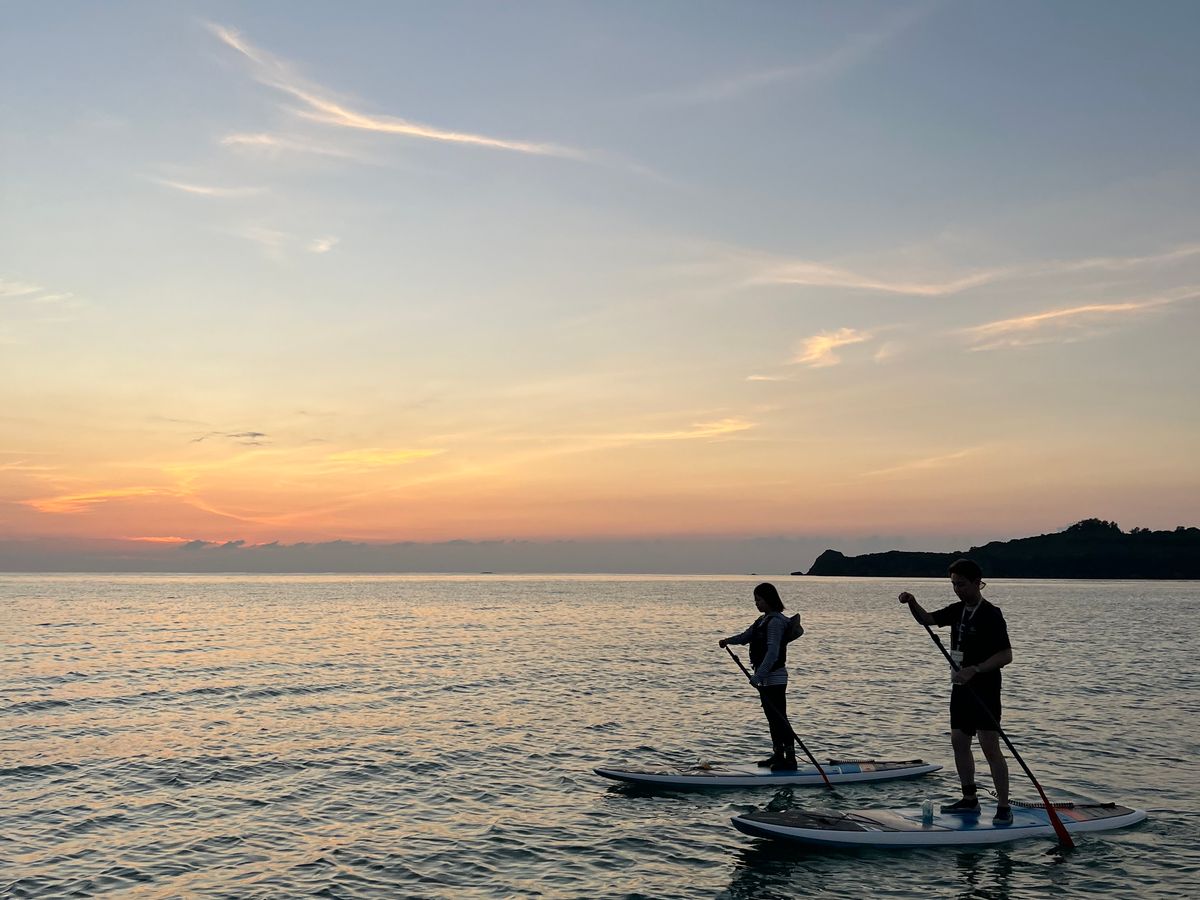 初めてsupでお世話になりましたが、ホテルまで迎えに来ていただき雨の中着いたビーチはベタ凪で、雲はあったものの最高のサンセットサップ体験出来ました。インストラクターの佐々木さんが、何枚も思い出になる写真を撮影していただき、サップに立てない時には付き添い頂き本当に感謝です。
