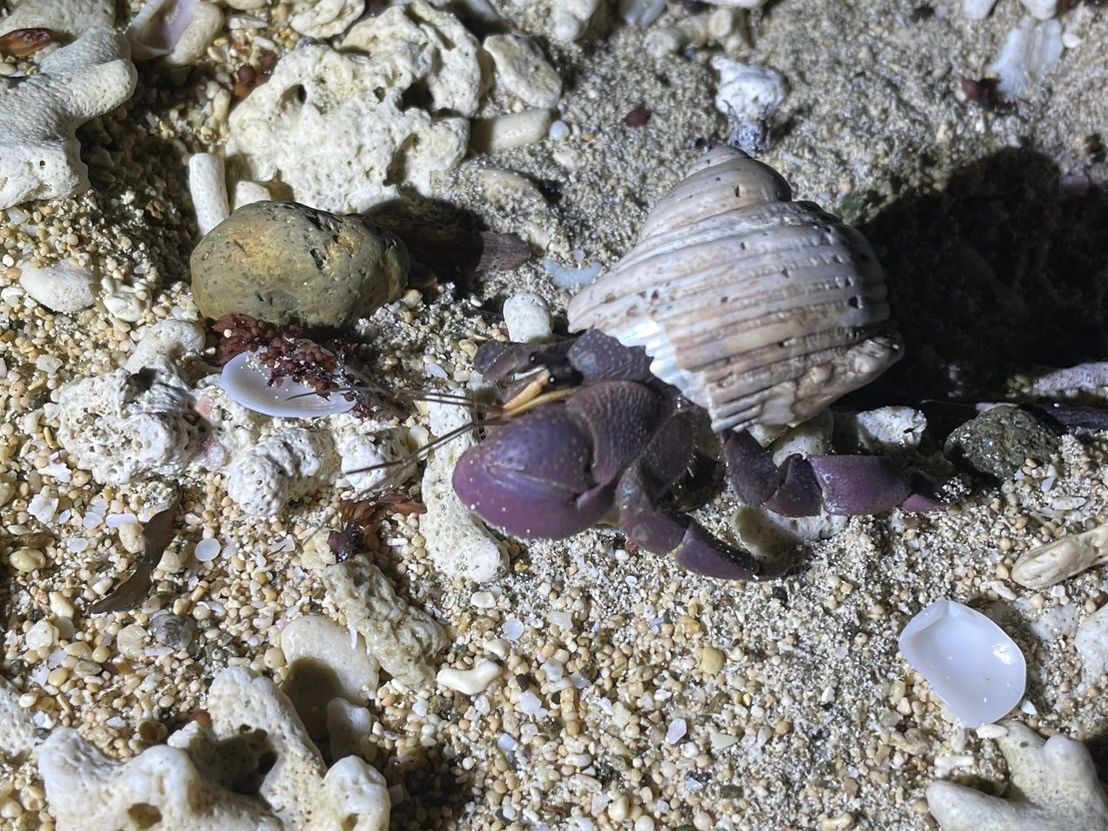 でっかいヤシガニに遭遇した他、子どものリクエストに応えてくれて、サソリモドキも一生懸命に探してくれたりと、親子3人楽しい夜の時間でした!