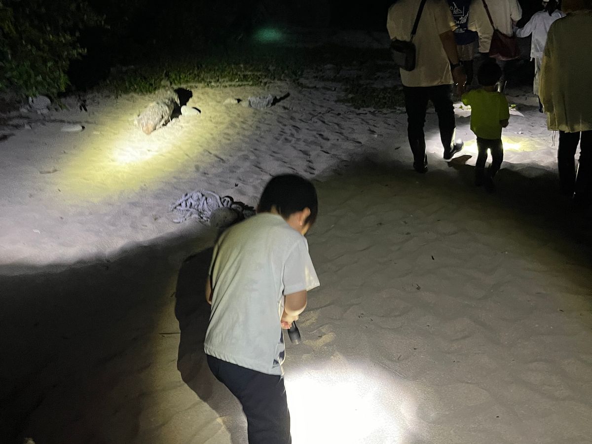 石垣に17:30着の飛行機だったため初日は何もできないかと思いましたがこちらのツアーをみつけました。19:30スタートだったのでホテルに荷物を置いてからでも十分間に合いました。集合は離島ターミナル。そこから30分ほどマイクロバスで移動。その後夜の森の中を海岸まで歩きます。ライトと長靴を無料で貸してくれるので安心して歩けます。※靴下は持って行った方がいいです。長袖は着なくても虫に刺されたりはなかったです。