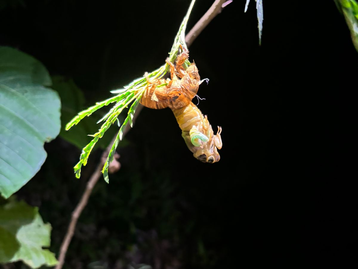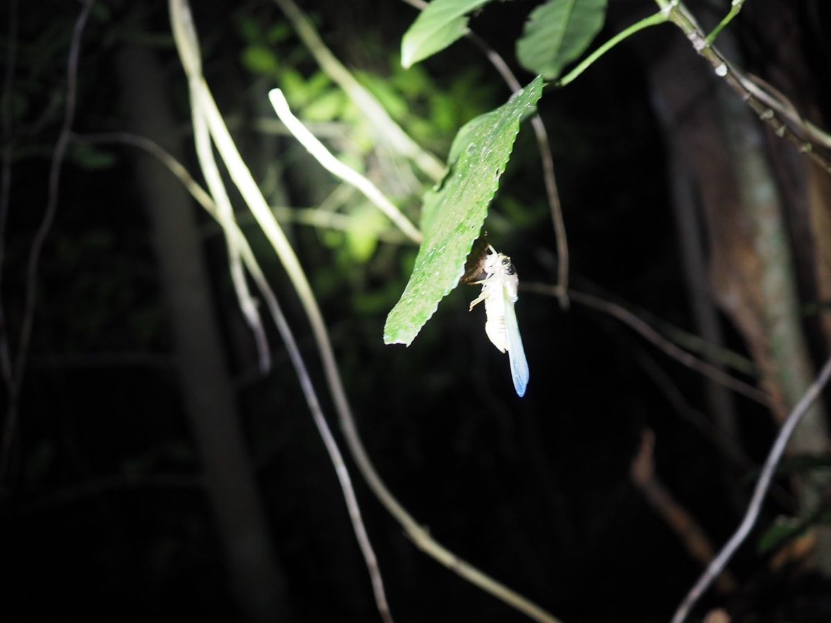 海岸から戻る途中でクマゼミが羽化しているのを見つけました。セミの羽化を見るのは子供の時以来です。その時の思い出もフラッシュバックしました。経験はずっと心に残っていますね!