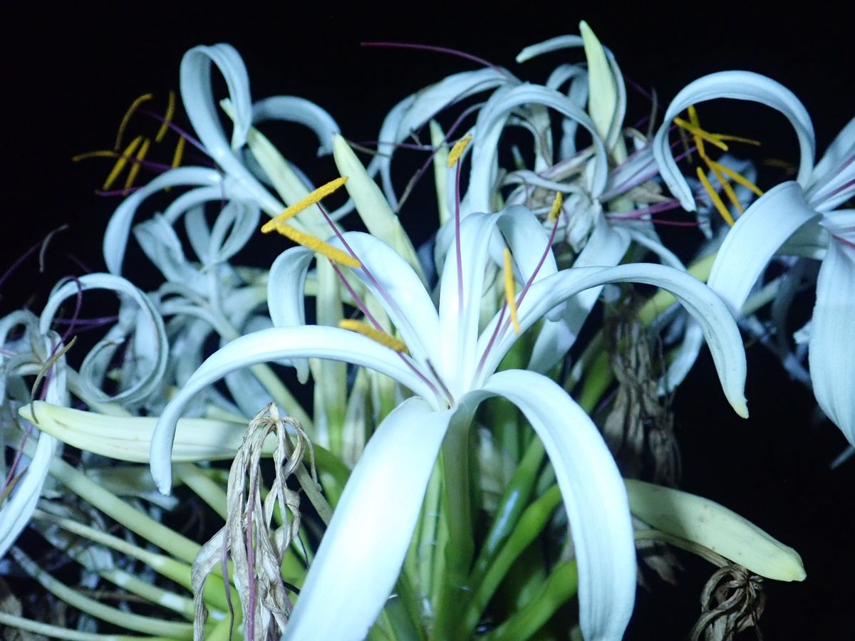 サガリバナは、沖縄・八重山地方において、この時期に咲く花で、しかも夜に花が開く花。夜に移動するので、一人で行くのはしんどいと思い、ツアーに参加しました。