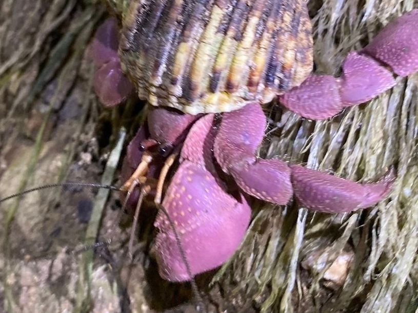 ガイドさんがムラサキオカヤドカリなど色々な生き物を見つけては解説してくれて写真も撮ってくれました。