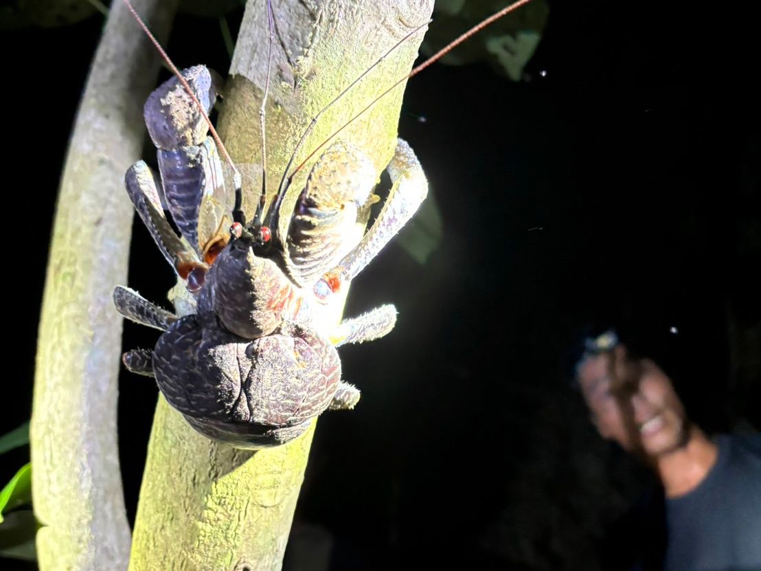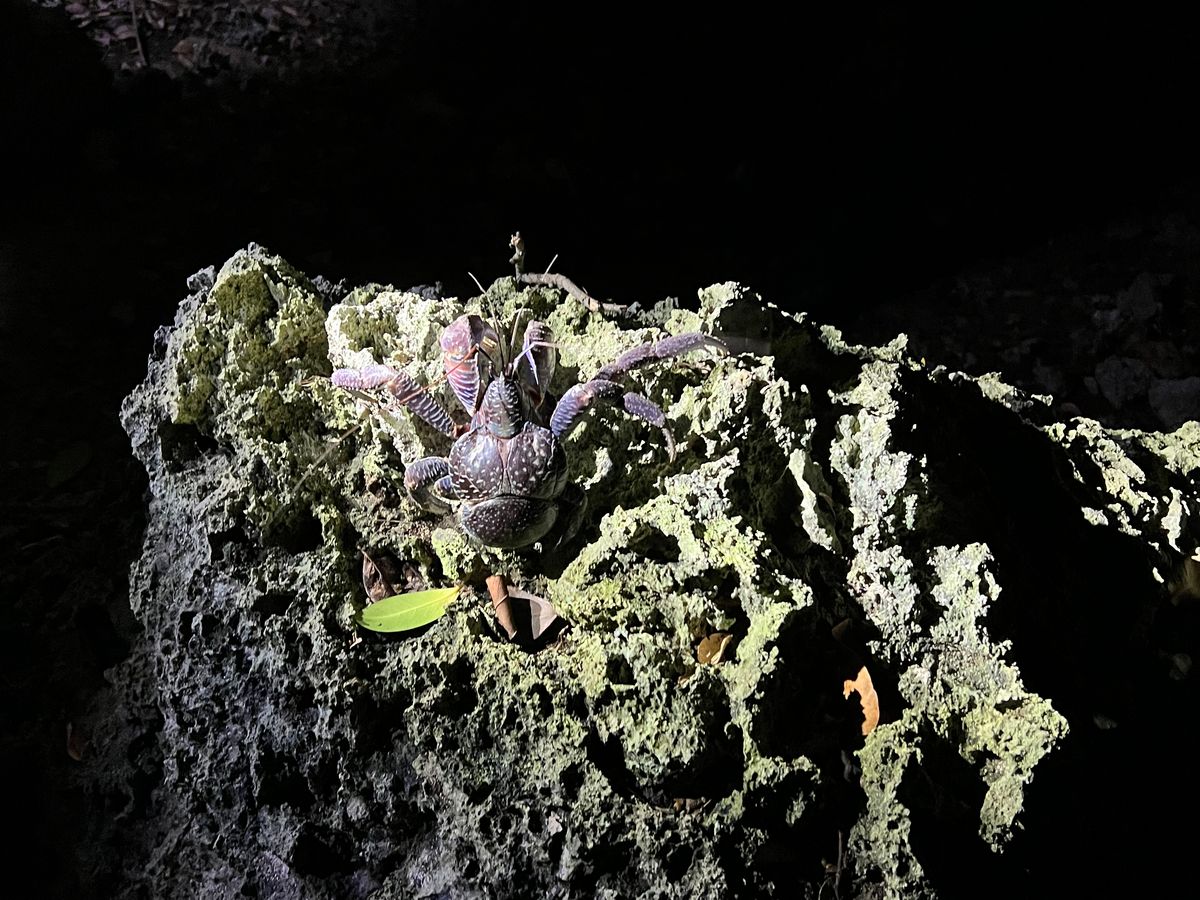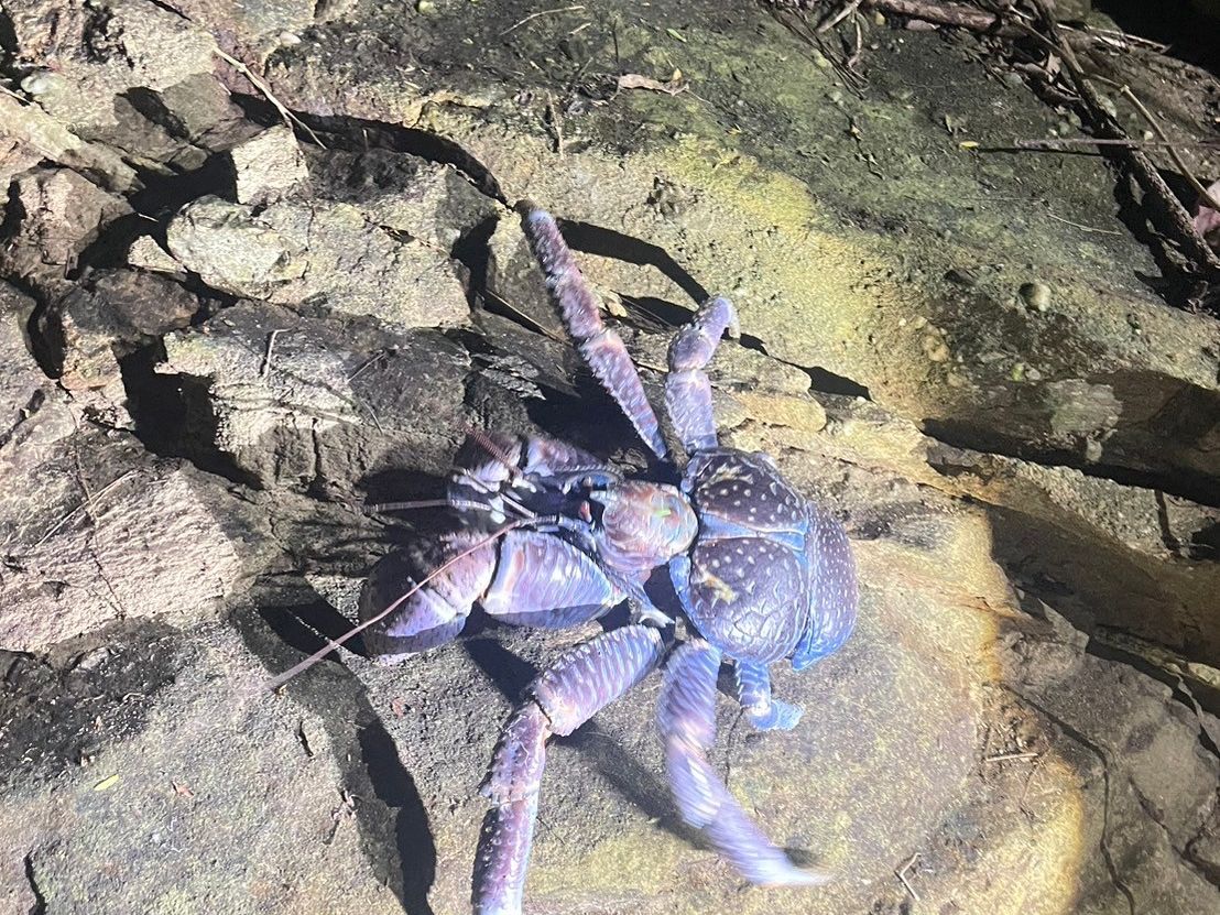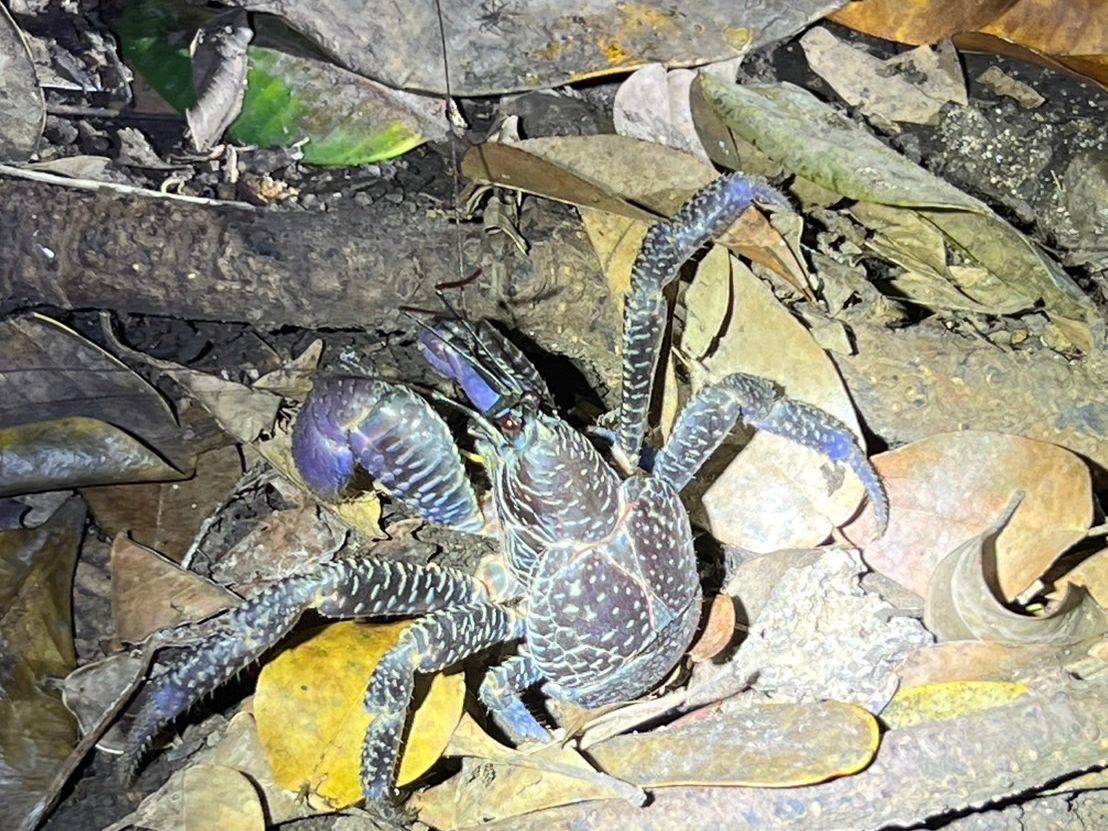 残念ながら満点の星空は見れませんでしたが、珍しくヤシガニに遭遇でき素敵なジャングルを散策できたと思います!!