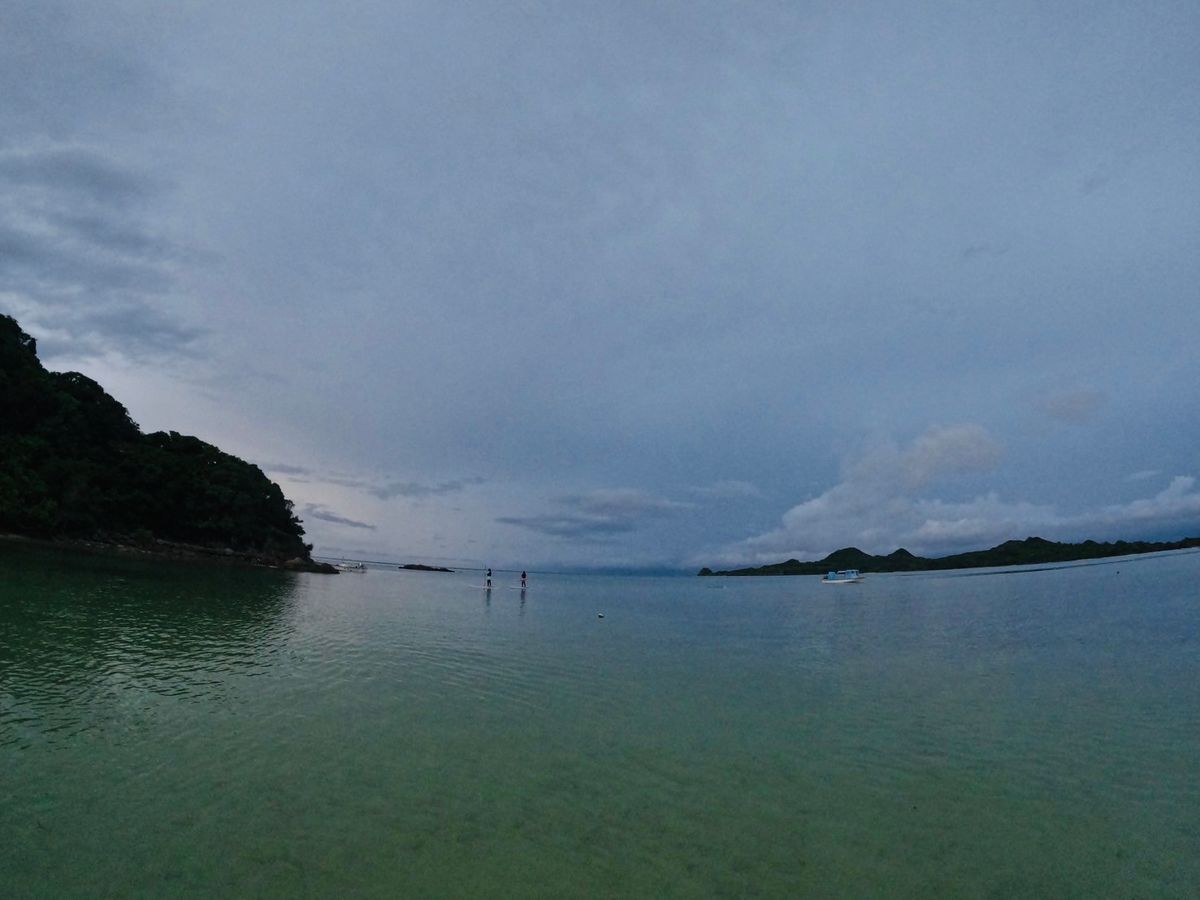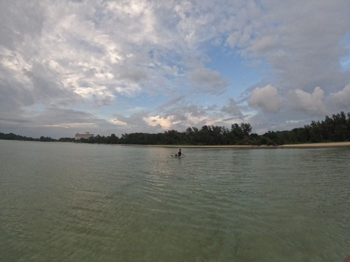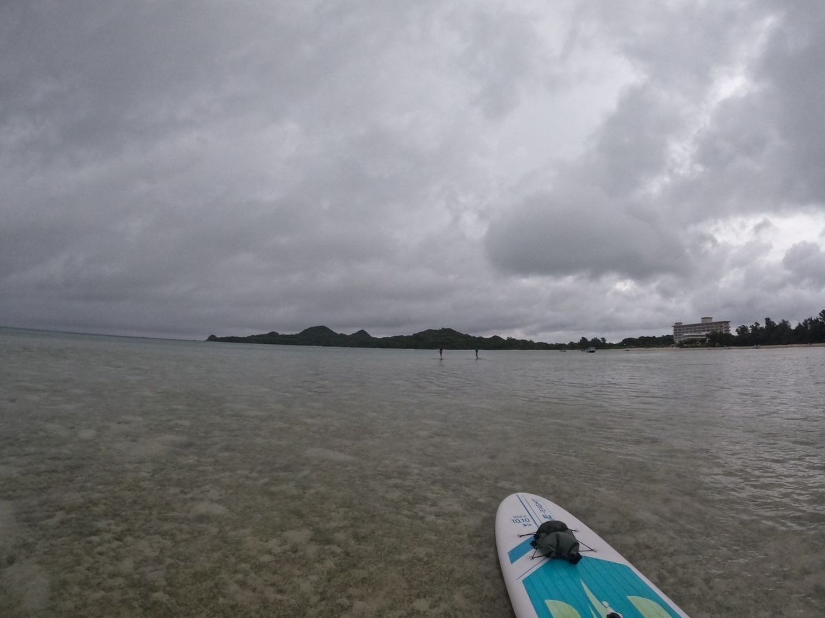曇り空でしたが、風がなく穏やかな波でした。ボードから落ちることもなかったので膝から下が濡れる程度で取り組みやすいアクティビティだと思います。ボードに立てる動作も意外とスムーズに出来、海の上をスイスイと進む感覚が楽しかったです。