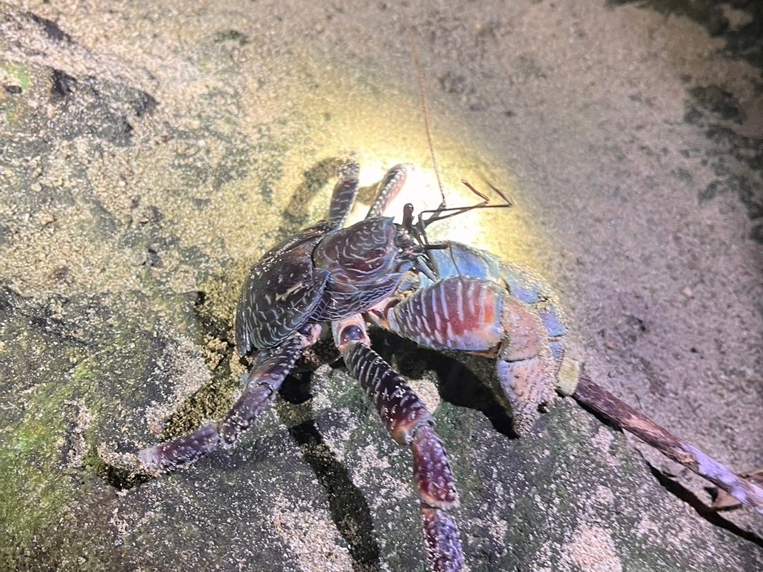 この日はヤシガニや他の生き物がたくさん出てきて、大きなヤシガニも最後に見つけることができましたね!