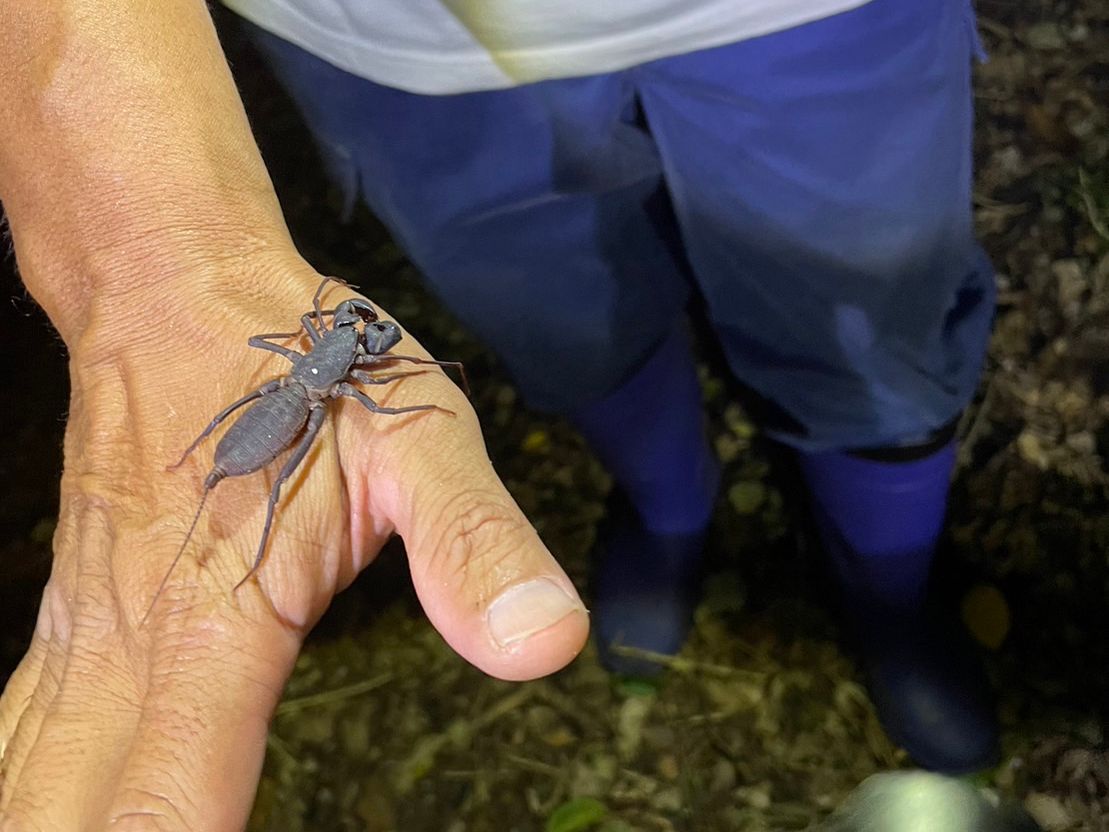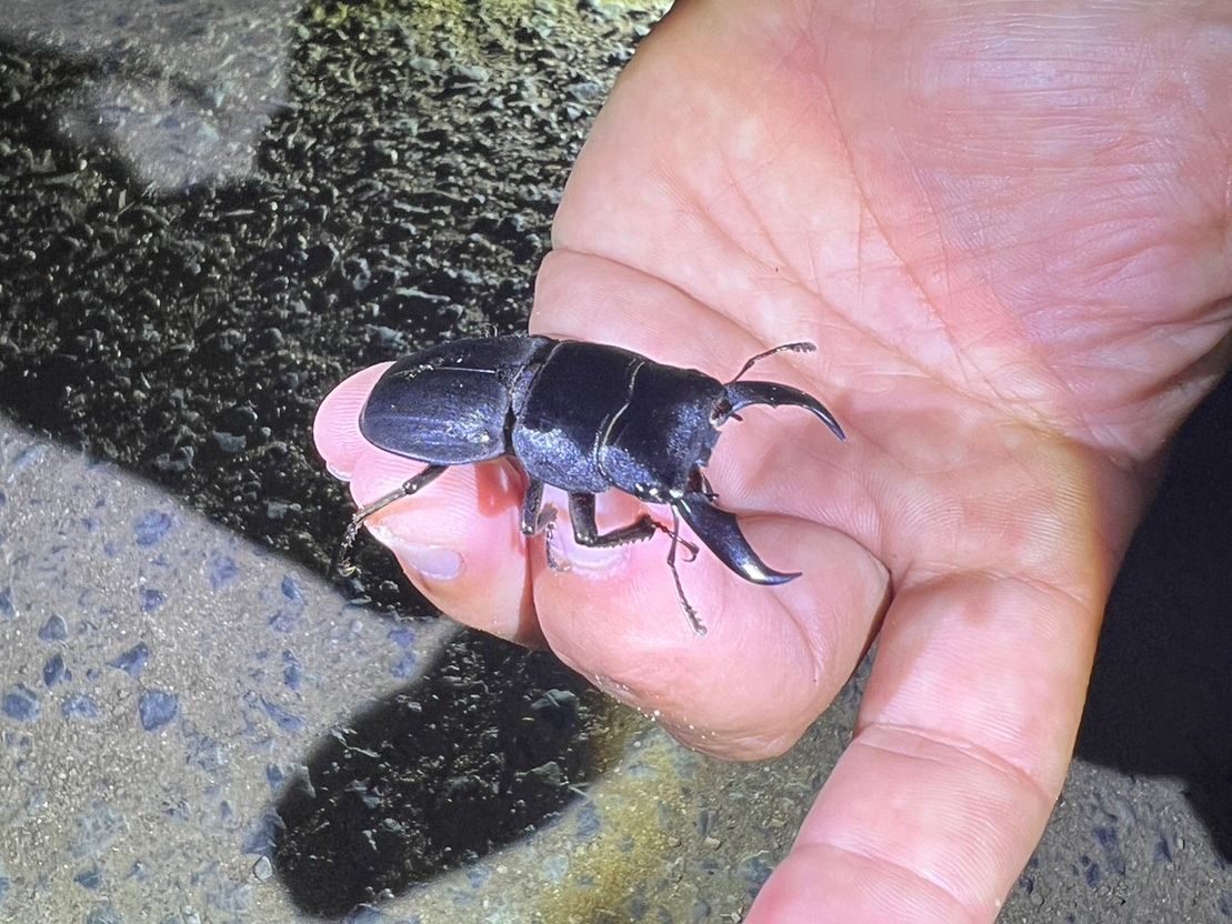 次はヤシガニを見に行きました。森の中を歩いて探しにいったのですが至るところに大小のヤシガニがおり大きいものは拳大の大きさがおりたくさんのヤシガニを見ることができました。そしてヤシガニだけではなく写真にあるような見たこともないサソリモドキも見ることができました。最後にこの地方にしかいないというクワガタも探しにいき見せてくれました。これにてツアーの終了でガイドさんがホテルまで皆を送迎してくれました。他の参加者さんたちとも和気あいあいと楽しい会話が終始でき、初対面ながら別れ際は少し寂しく感じるくらいでした。ガイドさんは本当に石垣島や野生の生き物を心から愛してるような方に感じました。至るところでも参加者に気配りをしてくれる最高なガイドさんでした。最初に言っていた虫も当方は気にならないレベルでした。