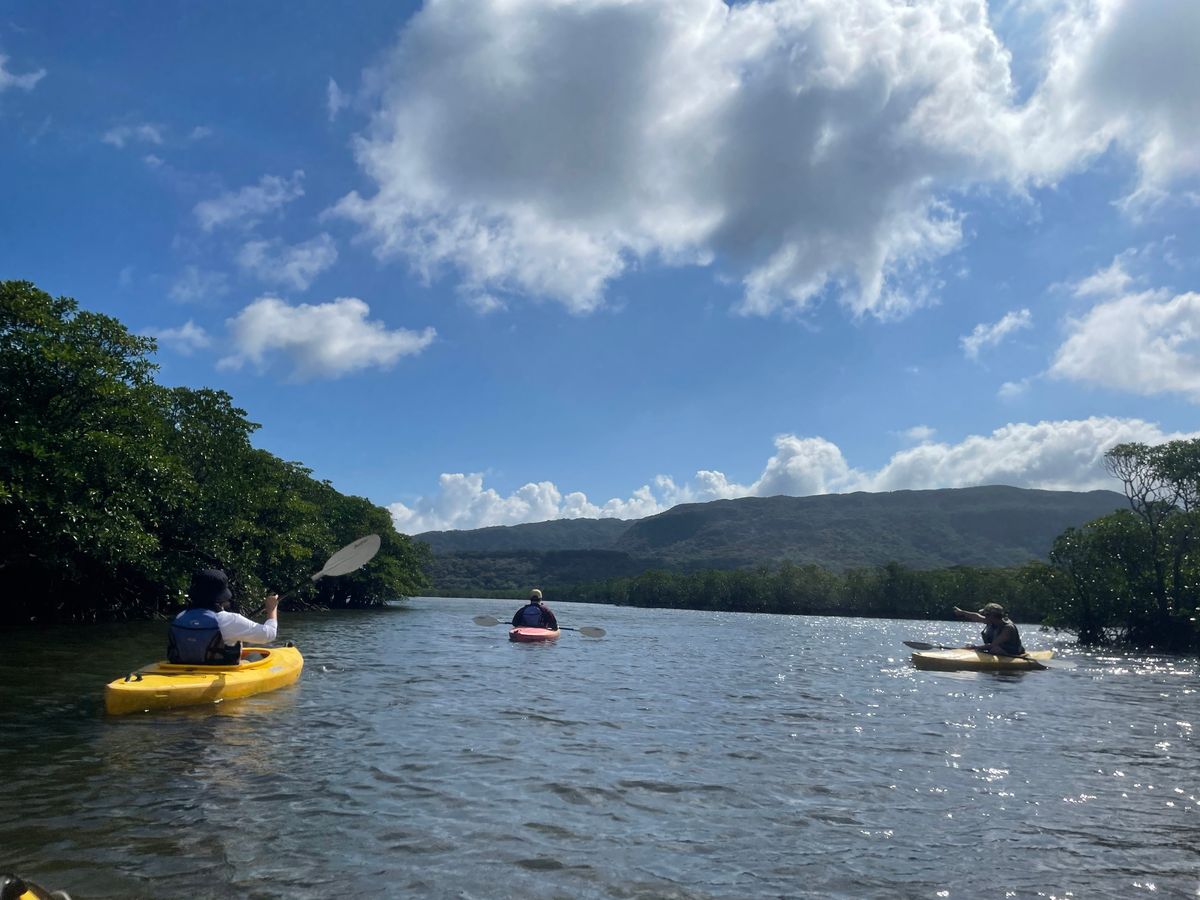 お正月明けの閑散期だったのか、カヌーは4人+ガイドさんで貸切でした!当日は、曇→雨の予報通り途中から小雨となってしまいました。しかし、むしろマングローブの緑の濃さが際立っていたような、本当に素晴らしい景色でした。はじめてのカヌーでしたが、予定より長く水の上に居るほど心地よい体験でした。次回は滝を見に行く1日のツアーに参加したいです。