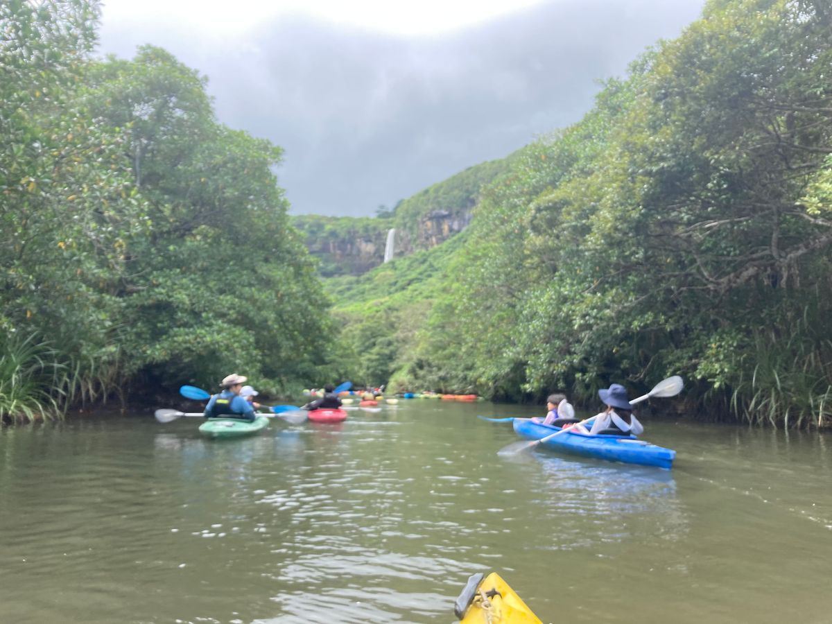 カヤックは40分✖️往復と長めなので、ゆったりとした流れの中、マングローブを眺め、オールで漕ぐ水の音を聞きながら、癒しの時間を過ごすことができました。トレッキングも、小1と小3の子どもたちを先頭にガイドさんがしっかりと見てくださり、珍しい木などの説明や、その他の質問にもしっかりと答えてくださり勉強になりました。3月末でまだ肌寒かったのですが、みんなで滝壺で泳いだことも楽しかったです。(ガイドさんも寒い中一緒に入ってくださり、驚きました!)お弁当の内容は、特大おにぎり2つ(梅と昆布)、唐揚げ、茹で卵、お漬物で、滝を見ながら(しぶきを浴びながらで寒かったですが)美味しかったです。トイレは、他社のピナイサーラツアーでも同様のようですが、携帯用トイレをガイドさんから頂き、持ち帰るという形でした。帰路は、再度トレッキングとカヤックで元来た道を戻ります。カヤックは、通常子どもは大人と一緒に乗りますが、往路の小1の息子(カヤック経験者)の技術を見て、特別に1人で乗せて頂き、黙々と漕いで楽しんでいる姿に成長を感じました。今後、得意なことはカヤックですと言わせたいと思いますw終了後に写真や動画も頂き、大満足のツアーでした。
