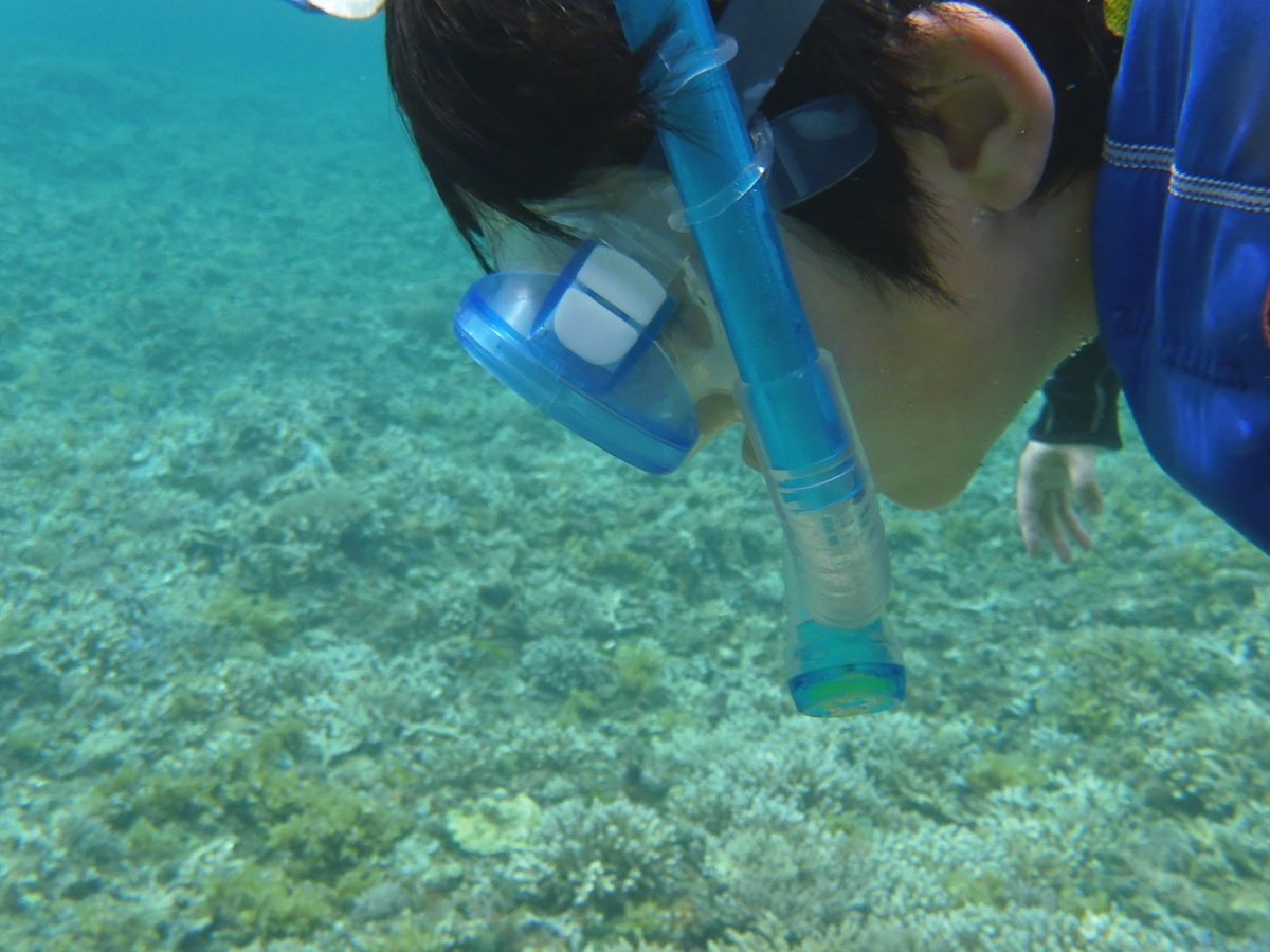 ここまででも十二分の満足度ですが、午後は、透明度抜群の海へ繰り出し、娘の人生初シュノーケリングを楽しむことが出来ました。