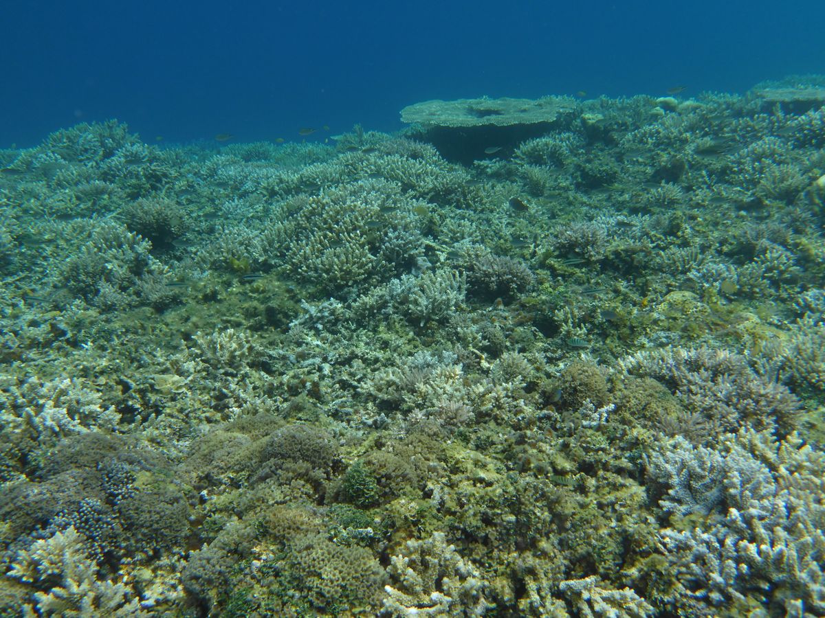 リーフエッジの深度のあるポイント、サンゴの姿も見える魚の大きさも変わり