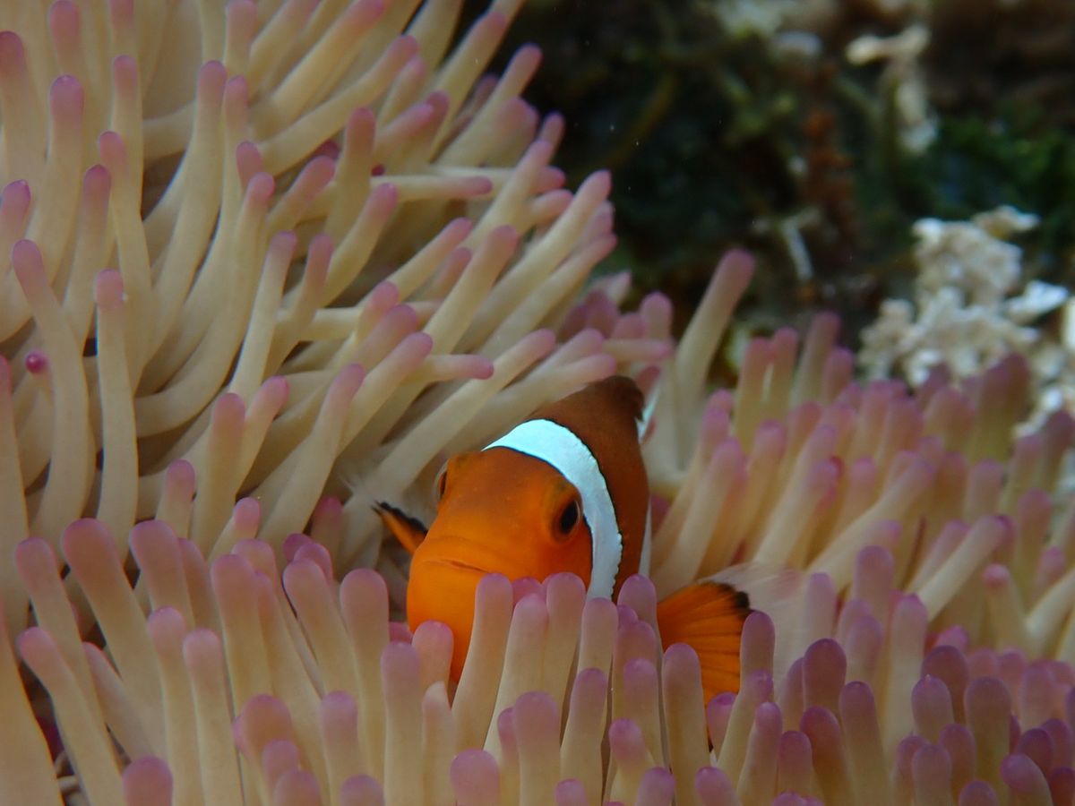 複数のグループいるなかで、他グループと別れ私たち家族のために大地さんが先導しカクレクマノミ、ハマクマノミの見せてもらいました。