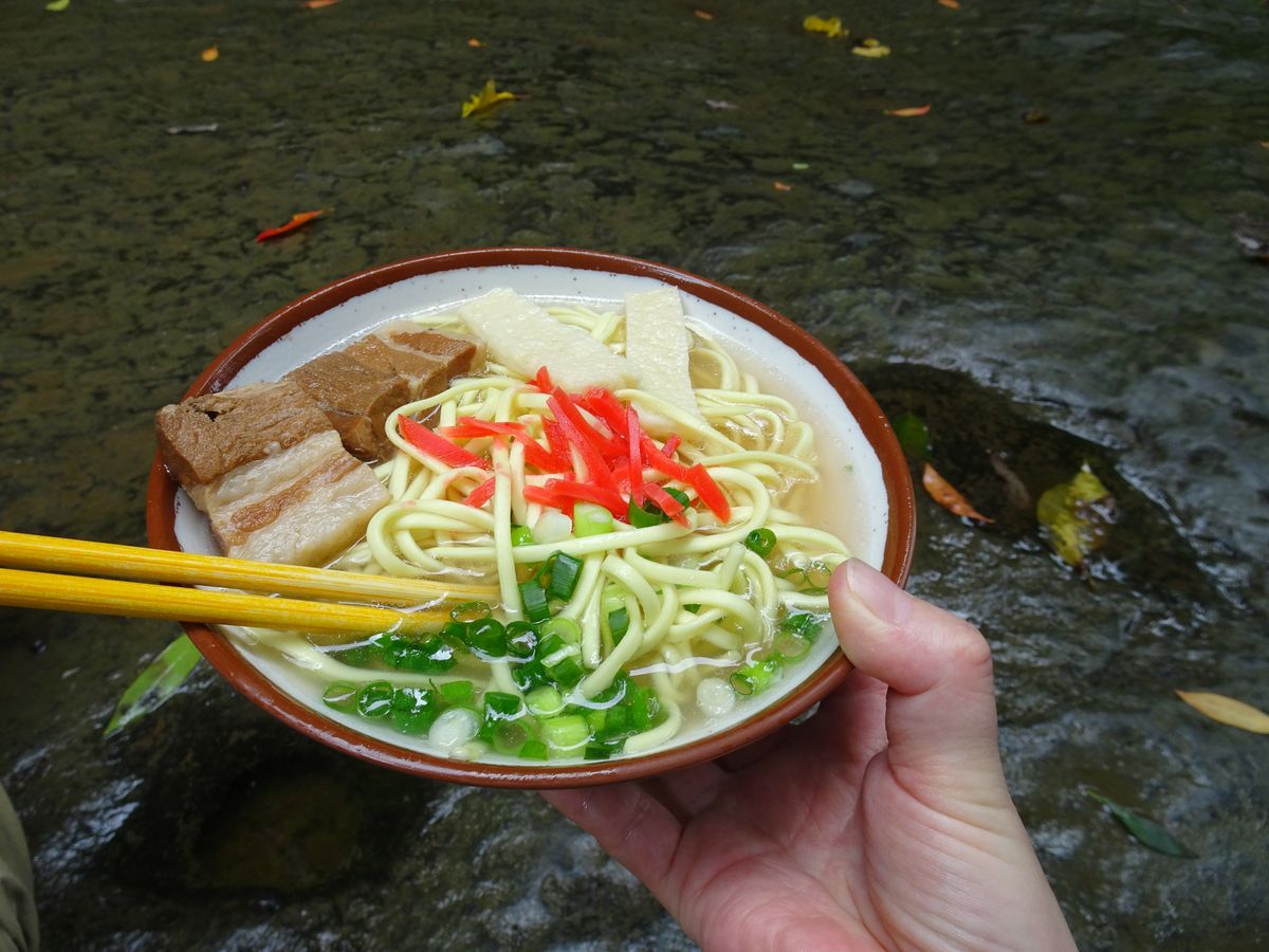 お昼の八重山そばもとても美味しく、滝で水遊びして少し冷えたら温かい飲み物と甘いお菓子もありました。