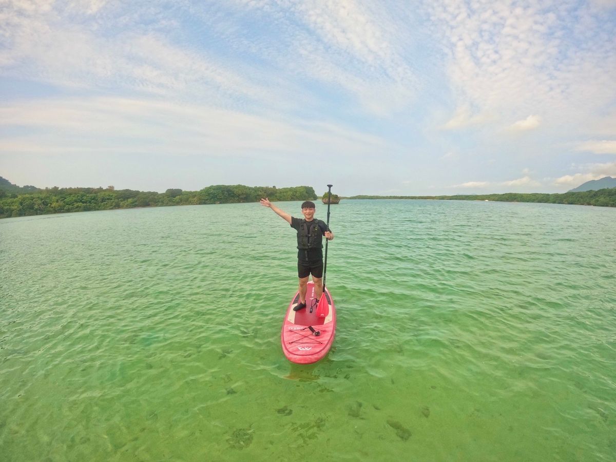 私たちが参加したタイミングが水位が引いて干潟ができるときだったため、途中でSUPを降りてマングローブの森に上陸し、散策を楽しむこともできました。