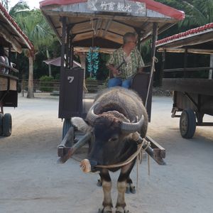 水牛車はとってものんびり。青い空、赤い花、白い砂、水牛のつぶらな瞳、全てに癒されました。本当に行って良かったです。