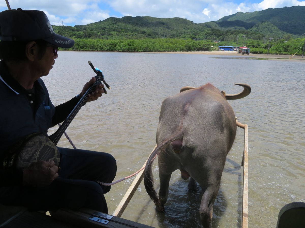 水牛は頭数も多いので待たずに乗れます。全てでは無いそうですが、三線の演奏が楽しめます。