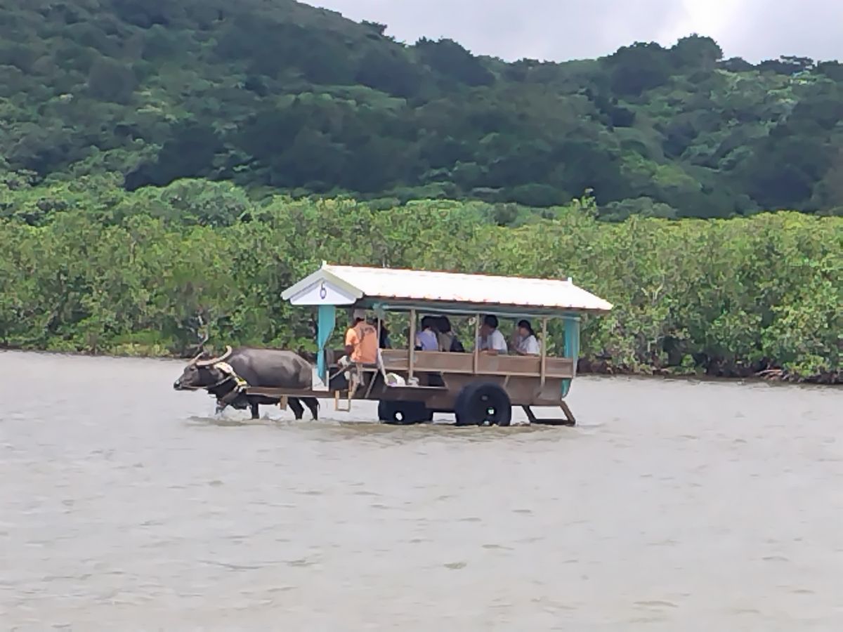マングローブ遊覧は満潮で水が濁っていて、根張りは余り見れませんでしたが、5種のマングローブに白、黄、赤の花が見れました、水牛乗車中の三線がいい感じでゆったりと楽しめました。もう少しゆっくりできるプランがあれば良いのではと思うほど楽しい時間を過ごせました。