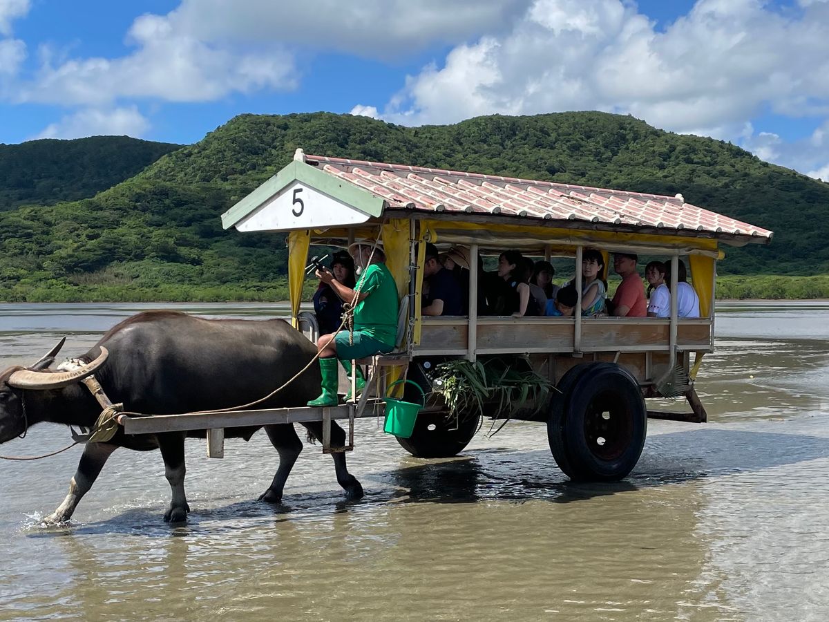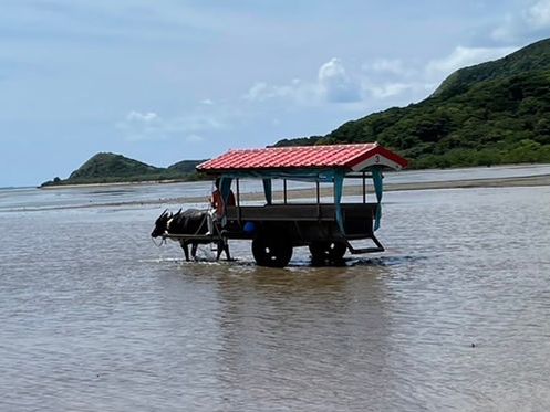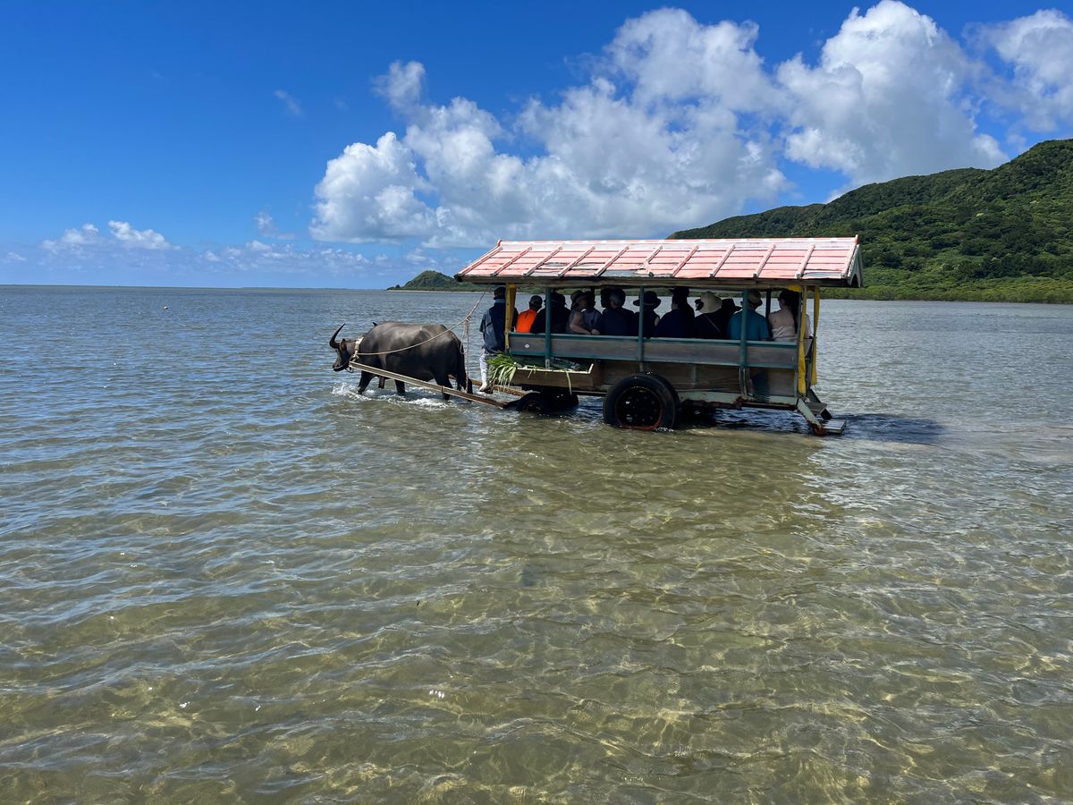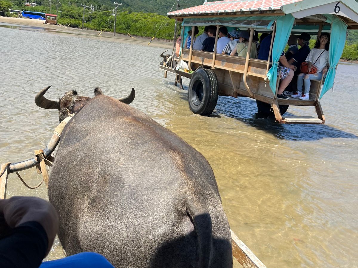 由布に向かう際、水牛車に乗りました。行きはお姉さんが三味線を弾き語りしてくれて、沖縄感を感じさせられました。牛も可愛かったです。由布で無料で水牛と写真が撮れるところも良かったです。