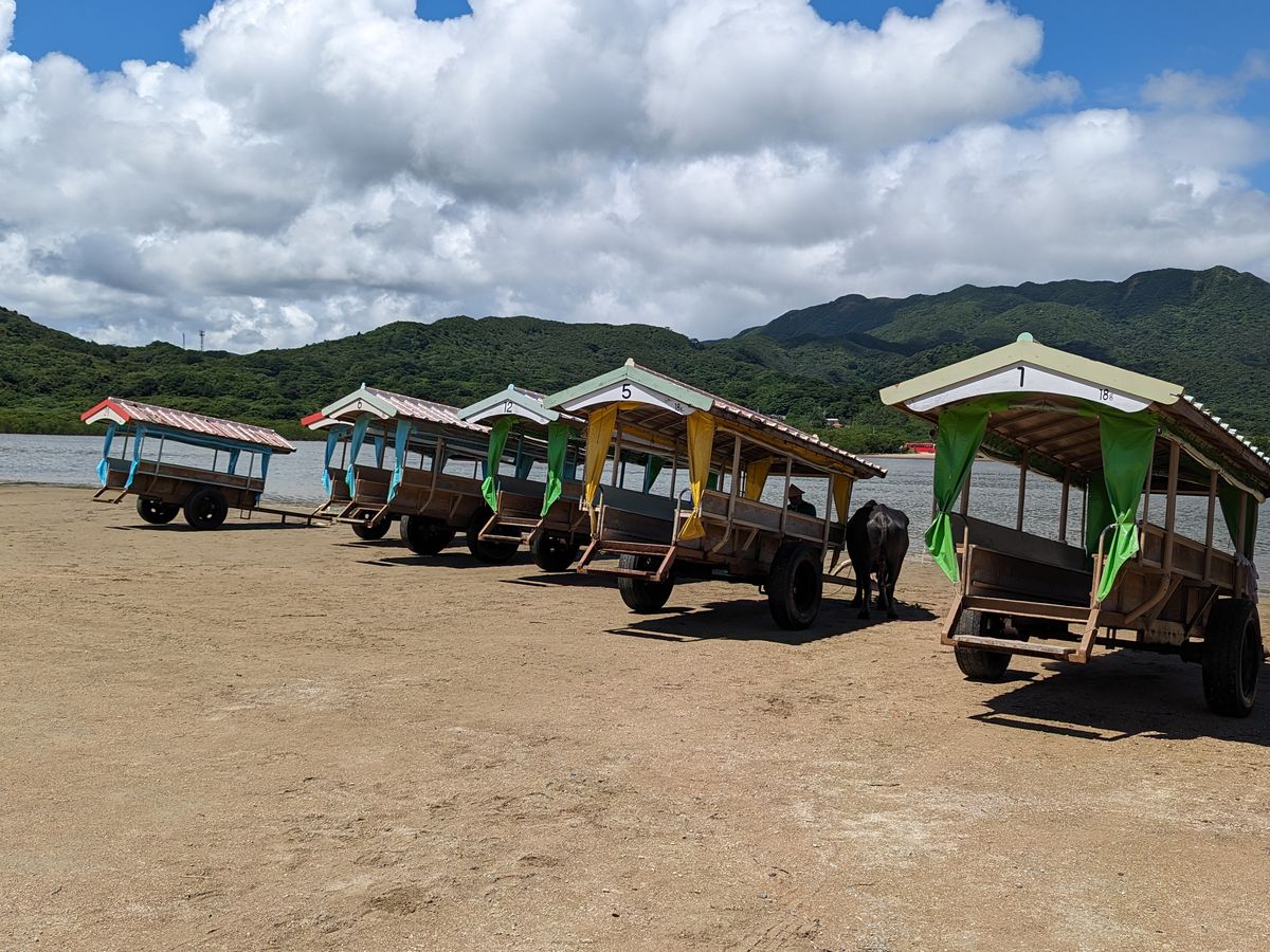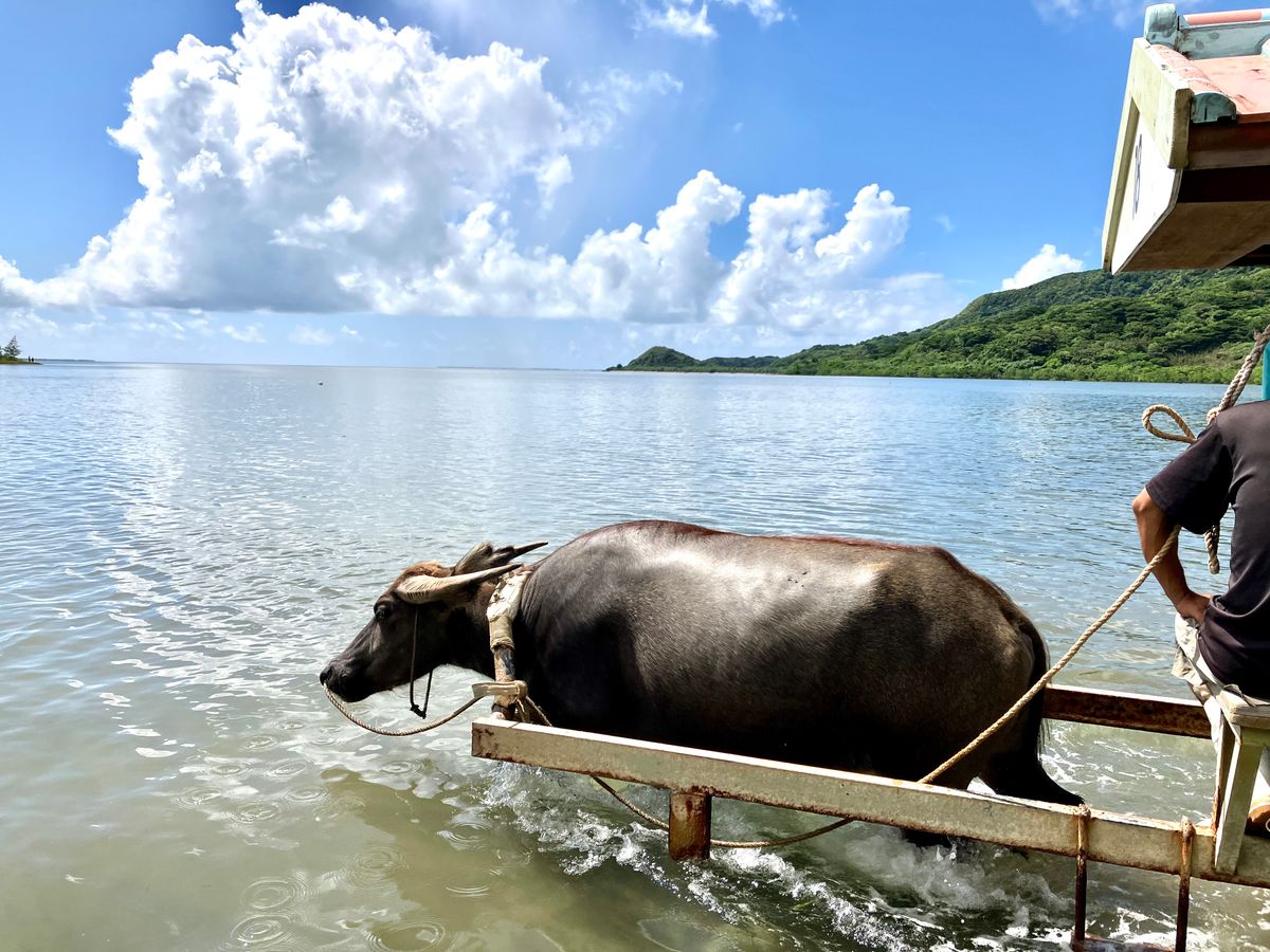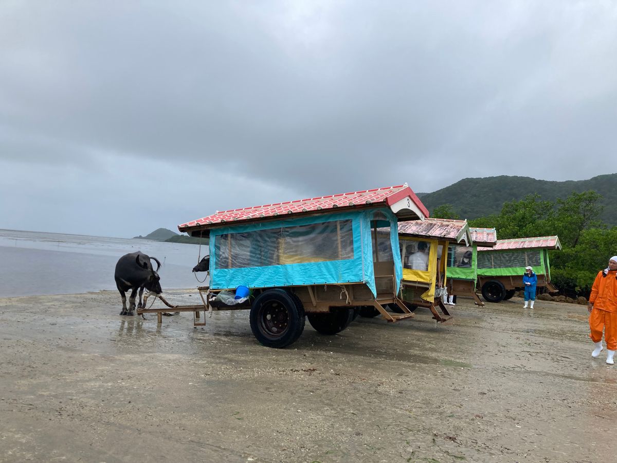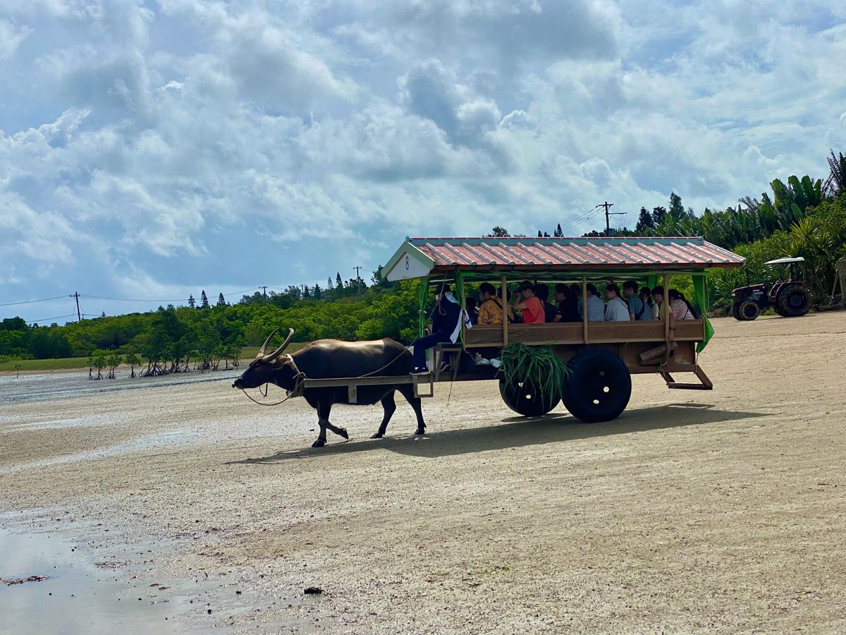 由布島へ渡るときの牛車は偶然にも1台しかない4輪のものでそれを引く「未来」クン