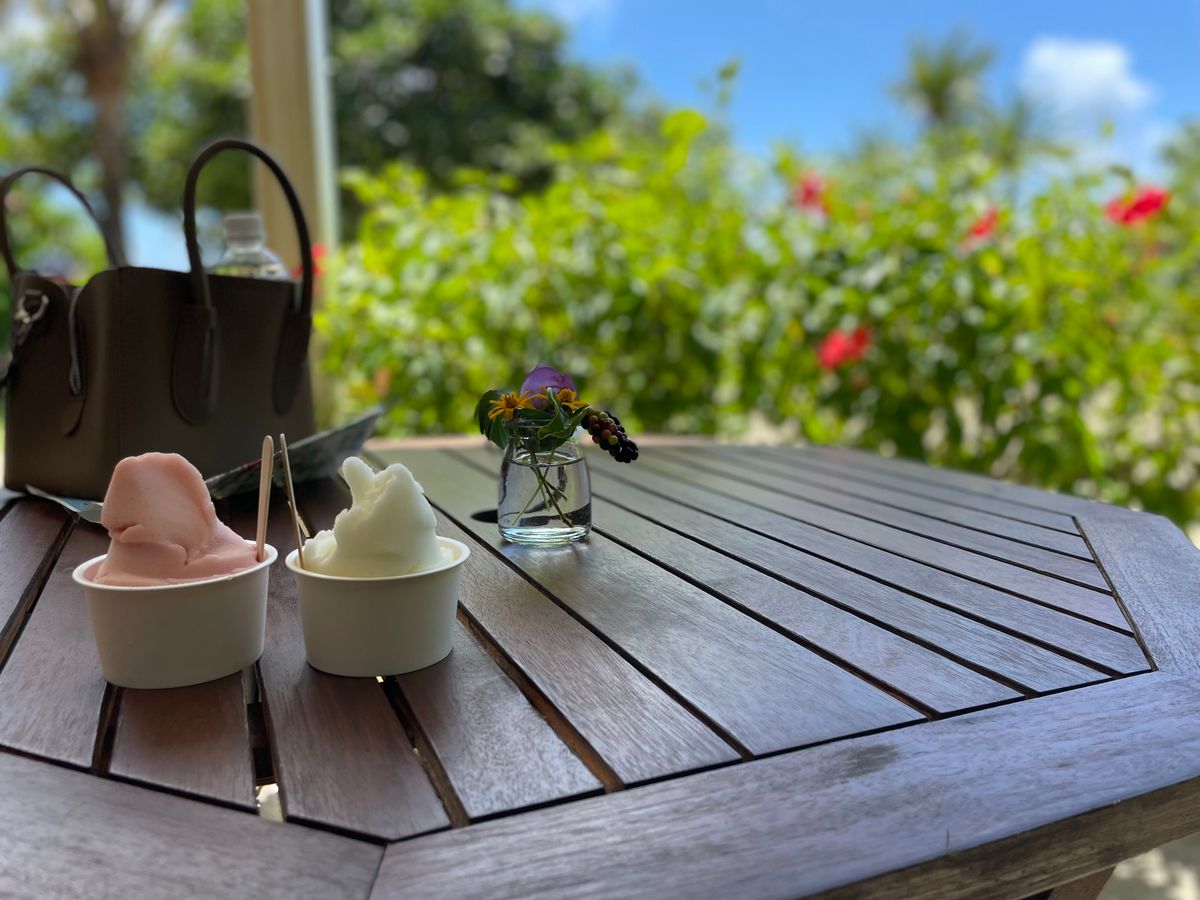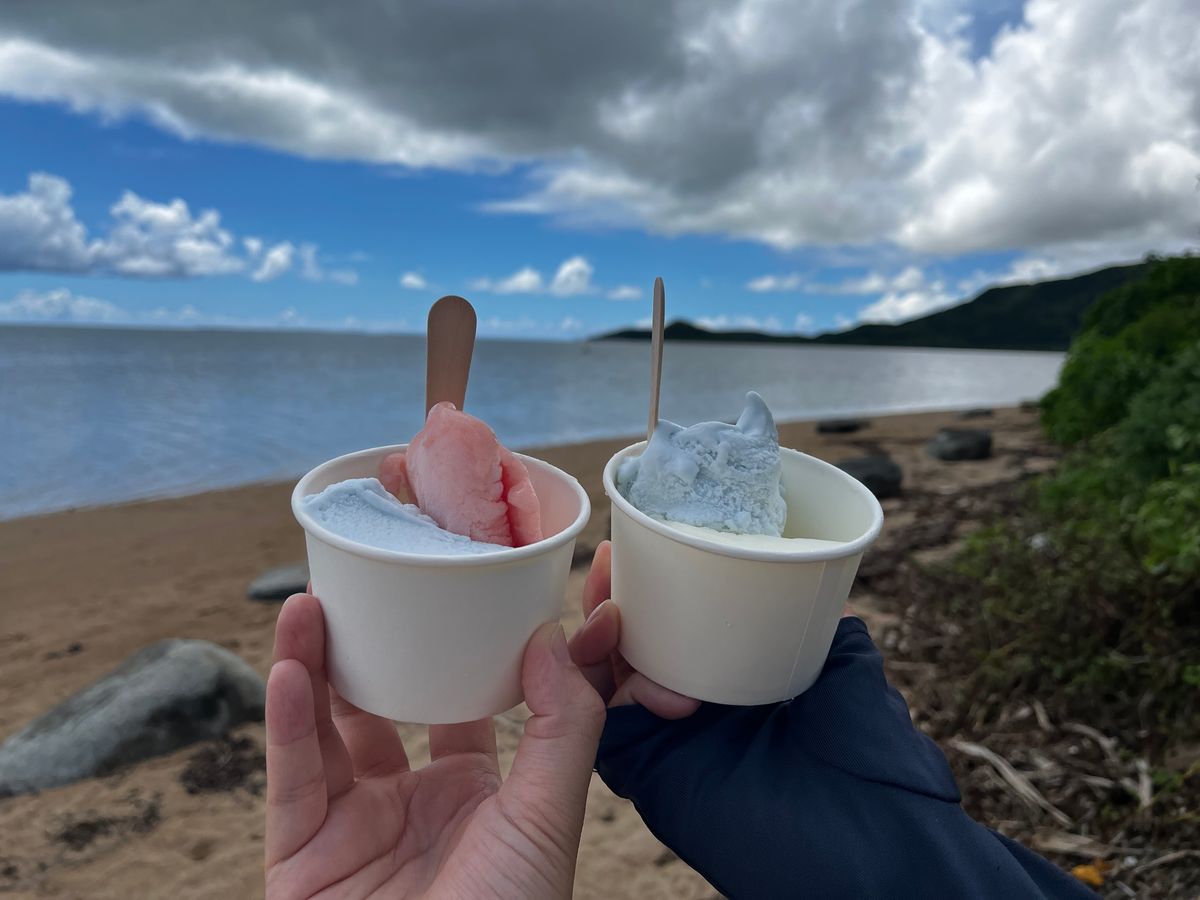 ビーチはあまり整備がされていない自然の状態のように思えましたが、広大な海を感じる事が出来、心が穏やかになりました。ビーチのそばにはカフェがあり、コーヒー・ジェラートなど楽しむ事が出来ましたが、エアコンが効いた室内があれば良かったと思いました。