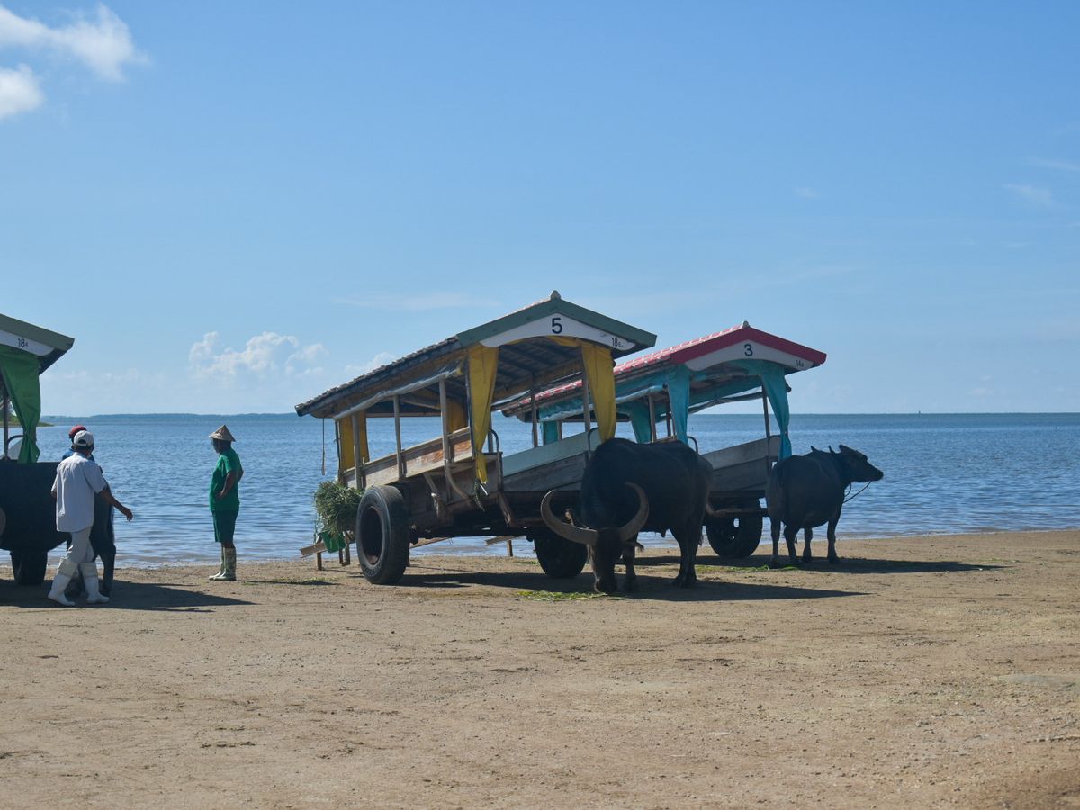 マングローブの後は、桟橋から観光バスで水牛車乗り場へ