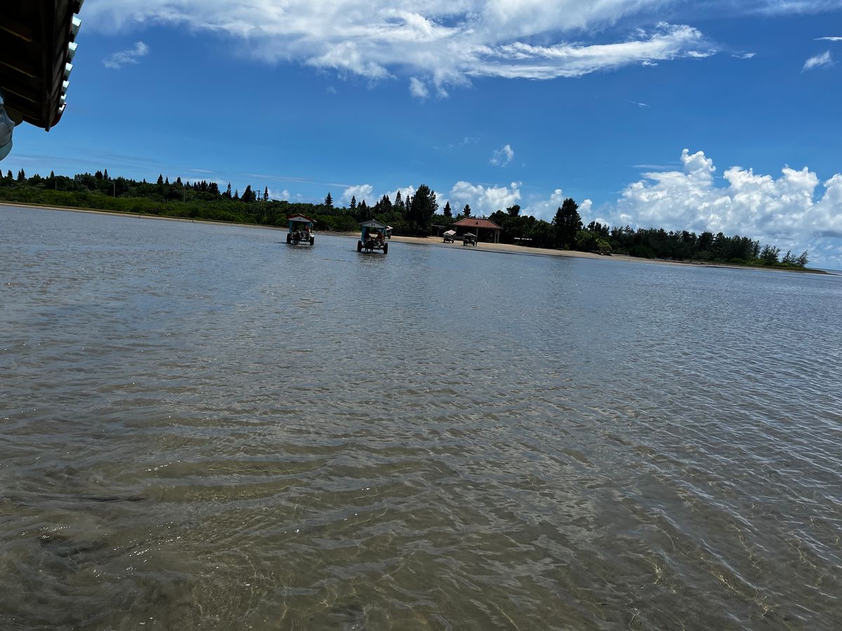 ちょうど潮が引いてくる時間帯で「行きと帰りの景色が変わりますのでしっかり見ててください」のアナウンスでスマホでしっかり行きの景色を撮りました。