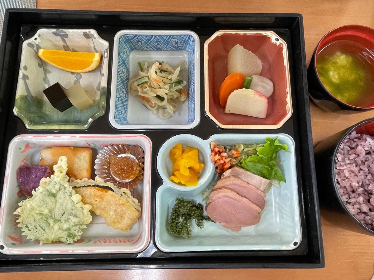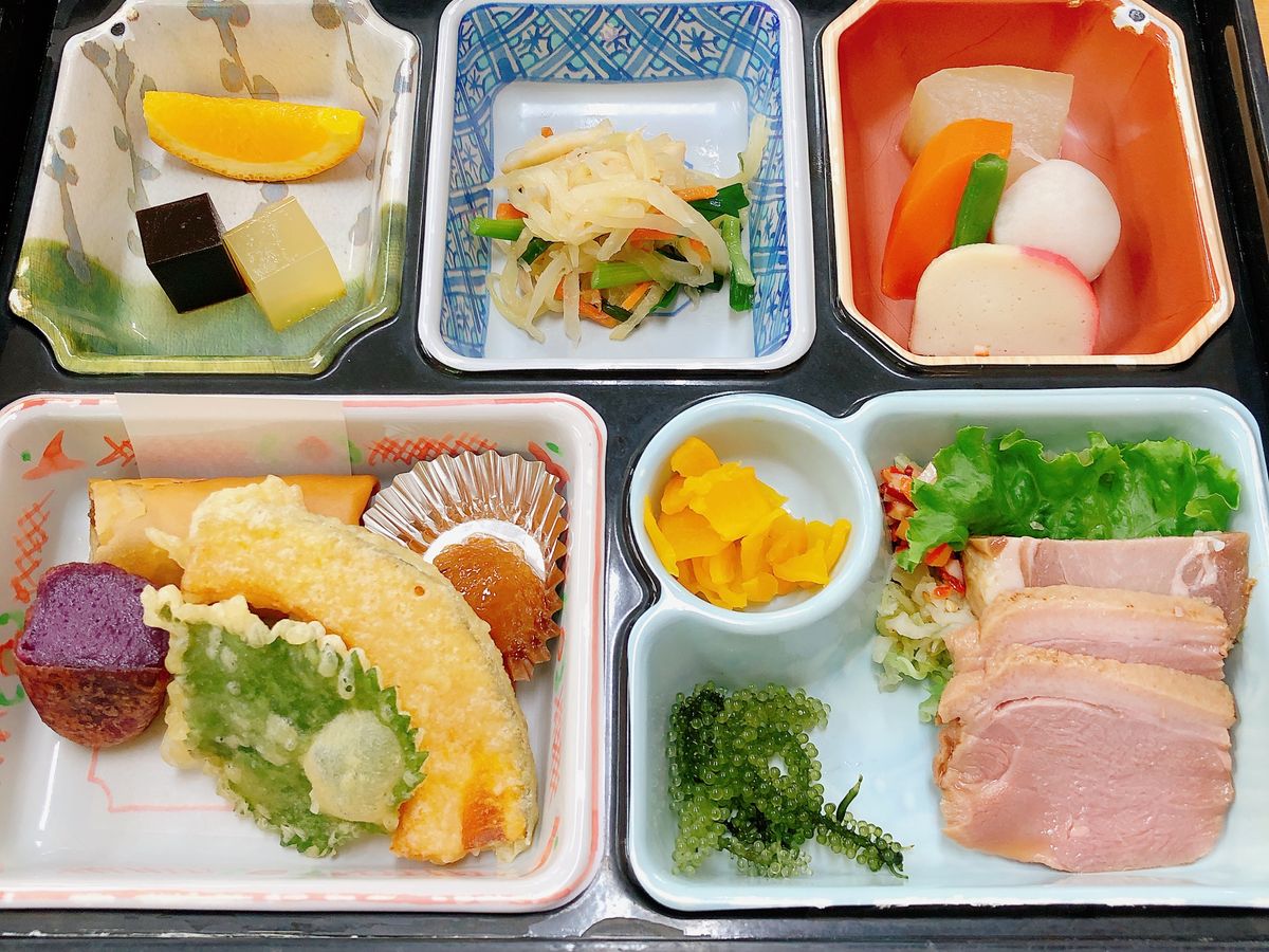 黒糖ようかんやアーサが入った味噌汁、チャンプルなど沖縄名物や沖縄ならではの食材をふんだんに使用したメニューでした。