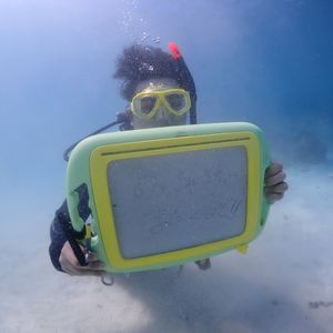妻が普段から泳げず、水に顔をつけるのにも恐怖を感じてしまうのですが、妻にしっかり着いてくれて、泳ぎのサポートもしてくれたので、妻も30分以上潜水することが出来ました。