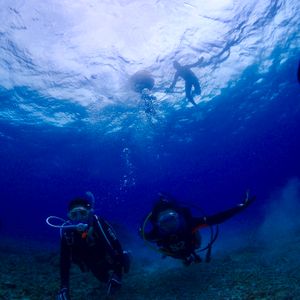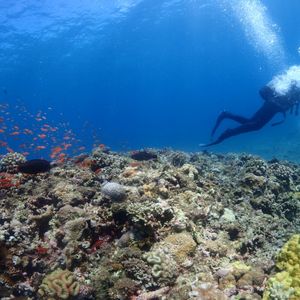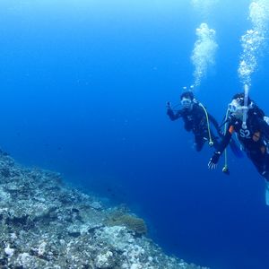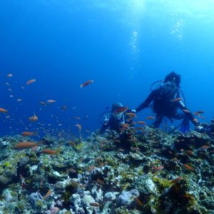 潜る前は恐怖心なかったのですが、いざ潜って船のはしごから泳ぎ出すとなると海の底が深くて怖くなってしまい、一度海面に出ました。。でも、インストラクターの方がアドバイスをくださり一緒に潜ってくださりとても心強かったです。ありがとうございました。
