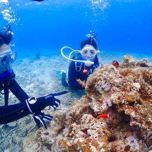 体験ダイビング1回経験済と初体験ダイビングの2人で参加しました。市街地とのダイビングと迷いましたがせっかく石垣島に来たということで手付かずの珊瑚礁が有名な北部でのダイビングにしました。インストラクターの方が丁寧に指導してくださり、体験ダイビングとはいうものの慣れてきたら自分たちで泳いで浮遊感を十二分に味わえました!気づけば約40分のダイビング1本丸々をあっという間に終えあまりの楽しさと天候にも恵まれていたので急遽2本目をその場で追加しました。2本目はより珊瑚が有名なスポットへ連れて行ってもらいました!眼下に広がるリュウキュウキッカサンゴは圧巻でした…‼︎ベルトラで申し込んだこともあり写真も無料でたくさん撮ってもらい最高の思い出ができました。ダイビング後はシャワー室でシャンプー等を済ませて近くの牛汁が有名なお店を教えてもらいました。次回はライセンスを取ってぜひマンタを見たいと思いました!