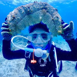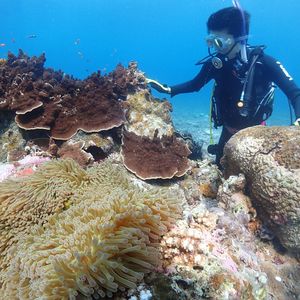 初ダイビングでちょっとドキドキでしたが、インストラクターの方が丁寧に教えてくださるので、安心して楽しく潜れました!前日雨で海が濁っていたようですが、全然気にならないくらいきれいでした!良い思い出になりました^^