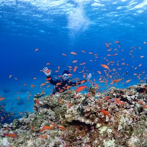 最初は呼吸の仕方が地上とは違う事で、コツが掴めず苦しかったですが潜る前に時間を取って頂き慣れる事が出来ました。