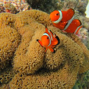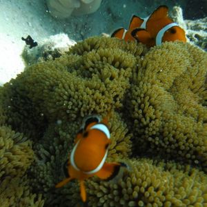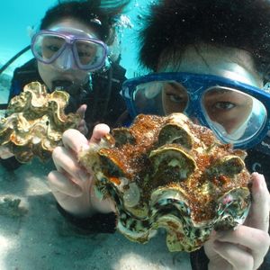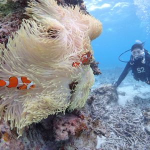 夫婦2人で参加しました。今回が初めての石垣島で是非ともダイビングを体験してみたいと思いツアーに申し込みをしました。当日は離島ターミナルまで迎えに来ていただき、移動もなく大変助かりました。スタッフの方々もとても楽しい方ばかりではじめてのダイビングも特に不安無く楽しむことが出来ました。この日は竹富島近くのポイントにてダイビングをしました、ハマクマノミや大きなシャコガイ等色々な海の生物を間近で見る事ができとても感動しました。又、海の中でもグループに1人のインストラクターさんが就いて下さりとても安心できました。コミニケーションも特別な機器により(ネタばれになるので伏せますw)細かな説明もきけて大満足です。