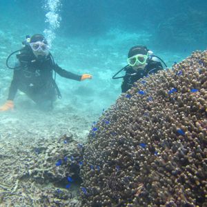 1人に1人づつインストラクターが付いてくれて、安心して潜れました。妻が船酔いしてしまいなかなか潜れなかったのですが、丁寧に付き添っていただいて、一緒に潜ることができて良かったです。