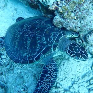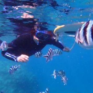 ウミガメ探しに結構深いところまで、かなり久しぶりのシュノーケルで、しかも強風のため場所変更で不安がありましたが、インストラクターさんが救命ライセンス所持者で安心感を持って臨むことができました。実際アドバイスやサポートも完璧でした!